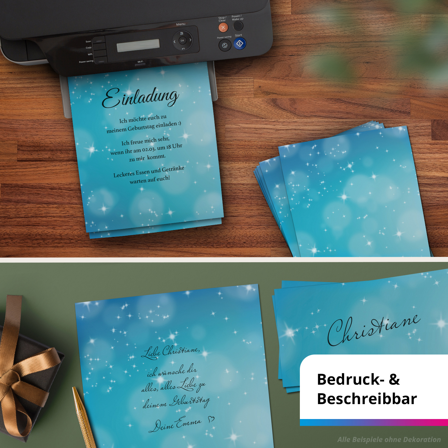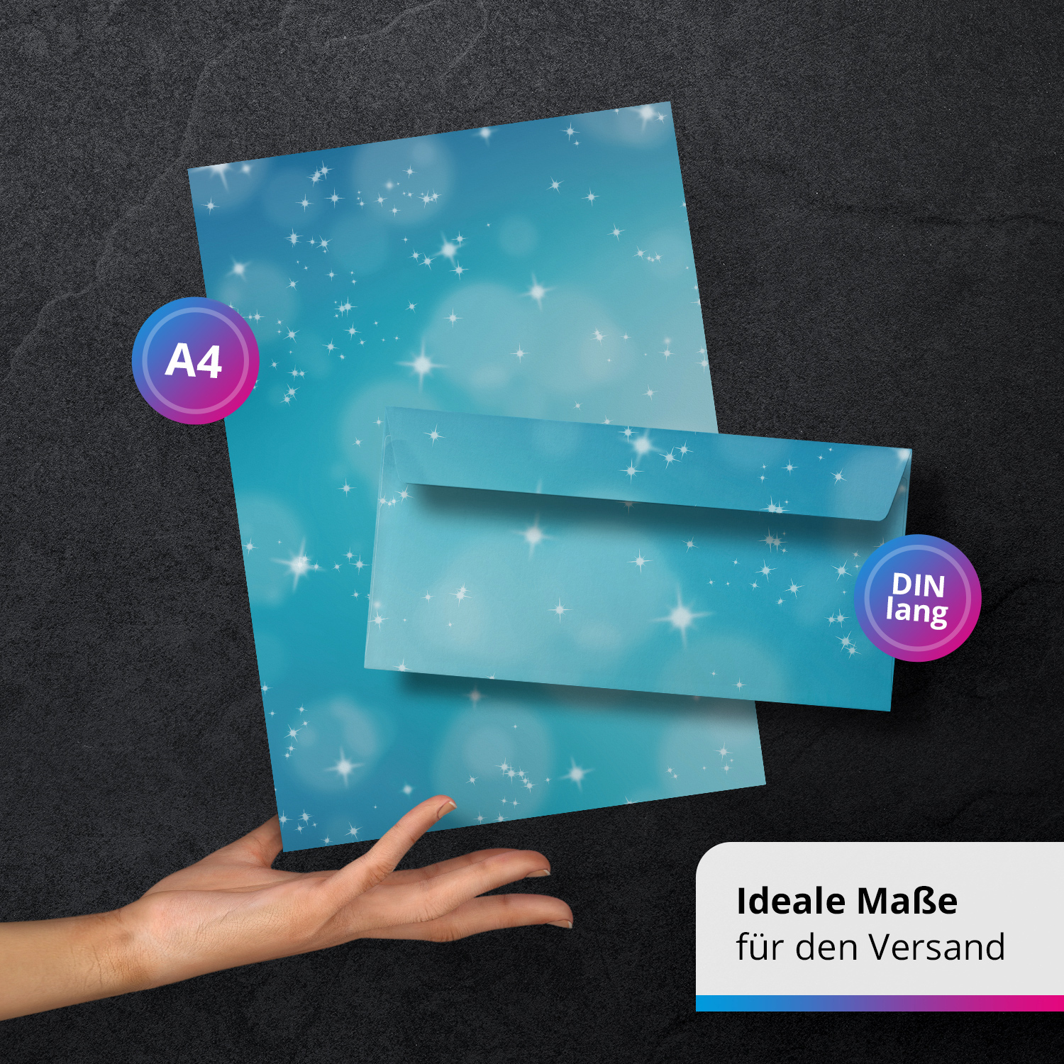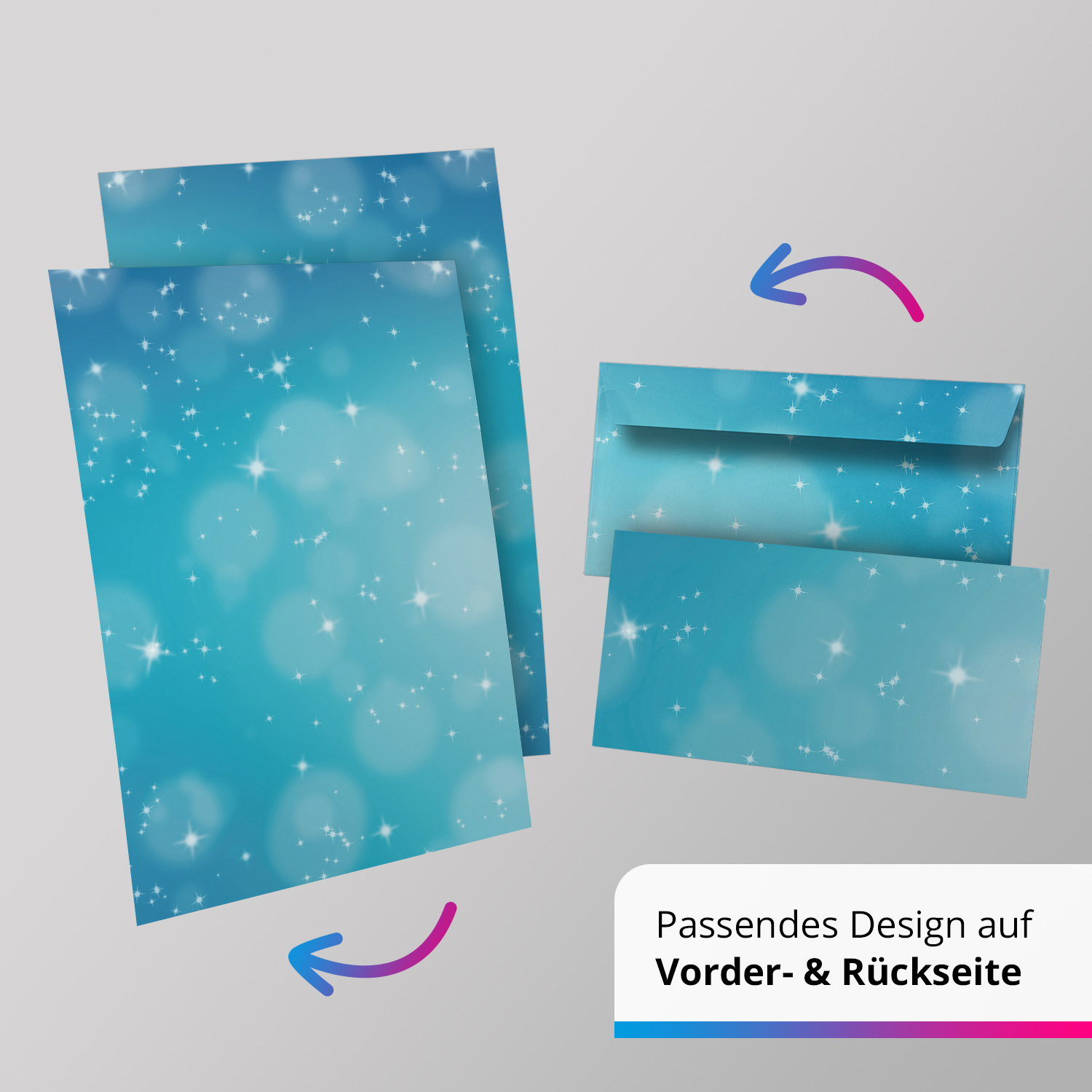 10 Briefpapier und Briefumschlag SET | Blau Sterne Modern | Papier und Umschlag mit Design-Motiv bedruckt | 90 g/m²