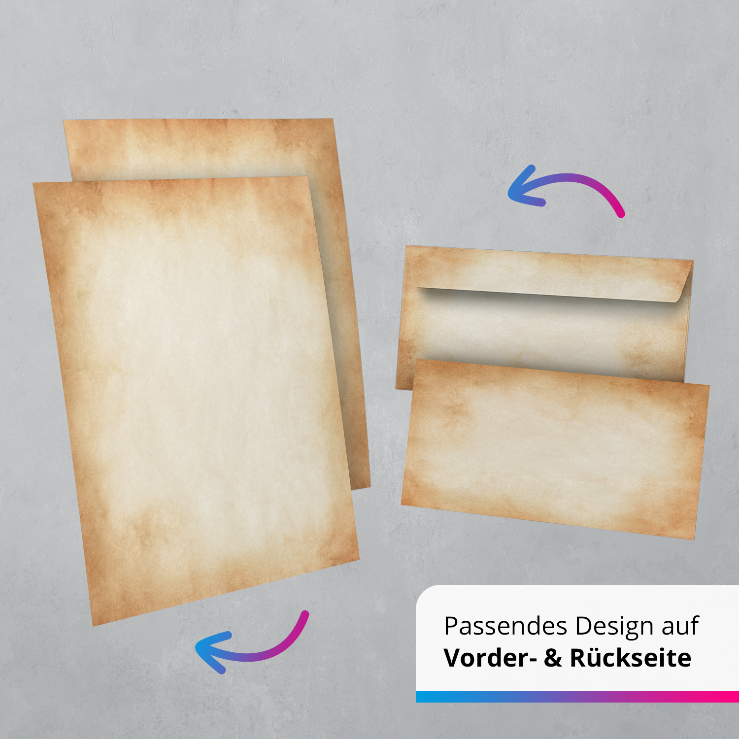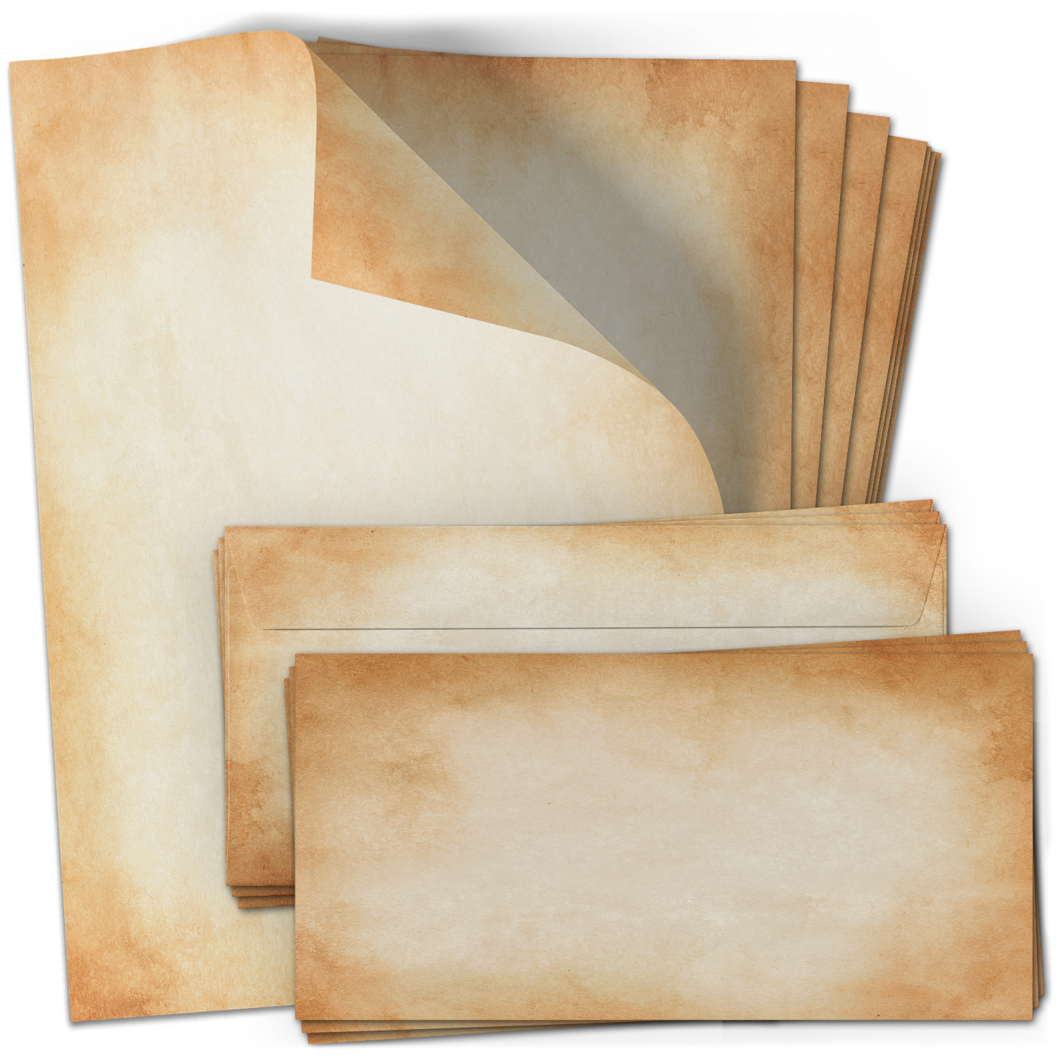 10 Briefpapier und Briefumschlag SET | Vintage Shabby Chic Retro Braun Beige | Papier und Umschlag mit Design-Motiv bedruckt | 90 g/m²