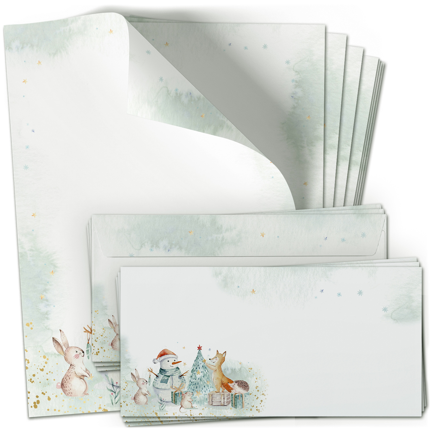 10 Briefpapier und Briefumschlag SET | Weihnachten Weihnachtstiere Weihnachtspost | Papier und Umschlag mit Design-Motiv bedruckt | 90 g/m²