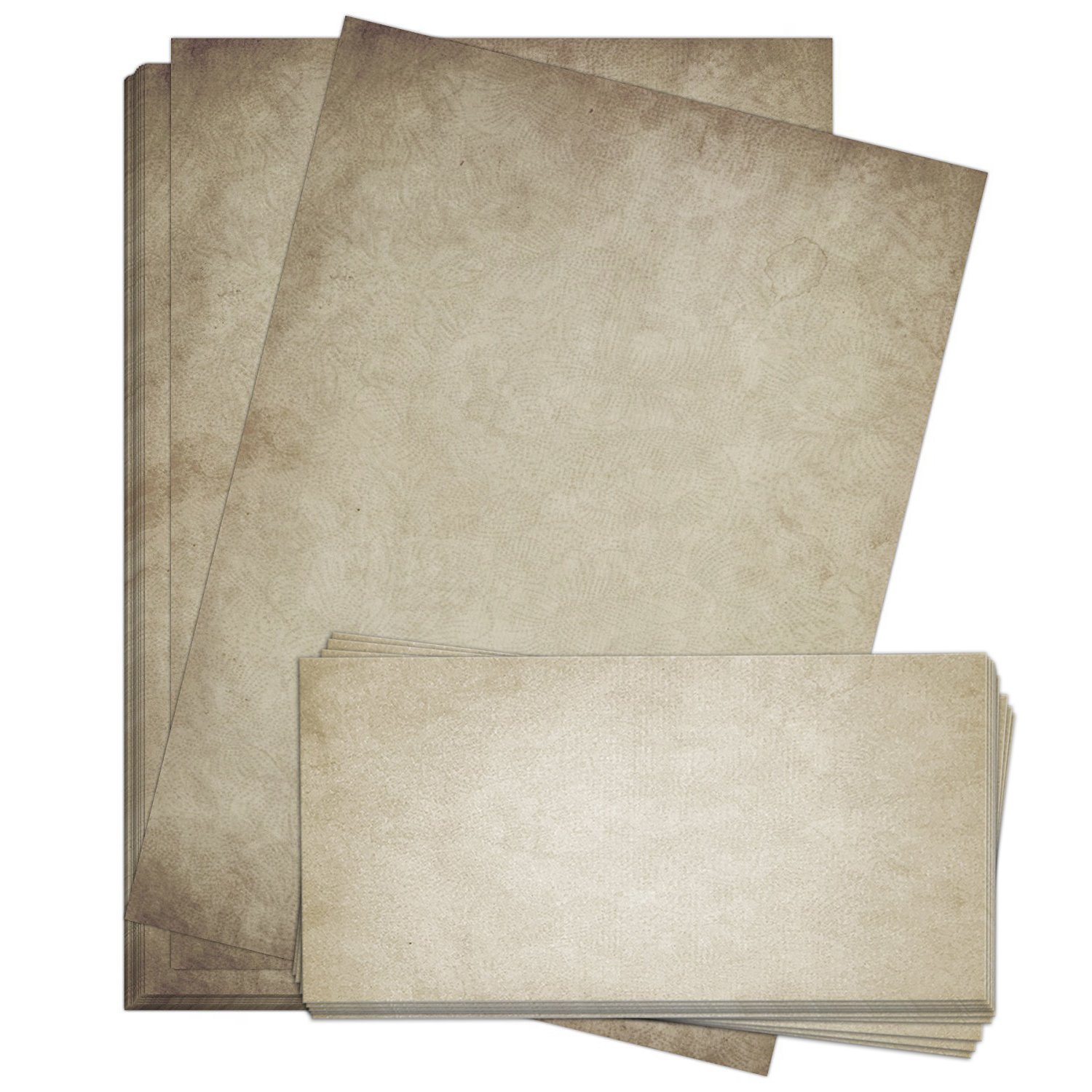 10 Briefpapiere und Briefumschläge SET | Vintage braun | Papier und Umschlag mit Design-Motiv bedruckt | 90 g/m²