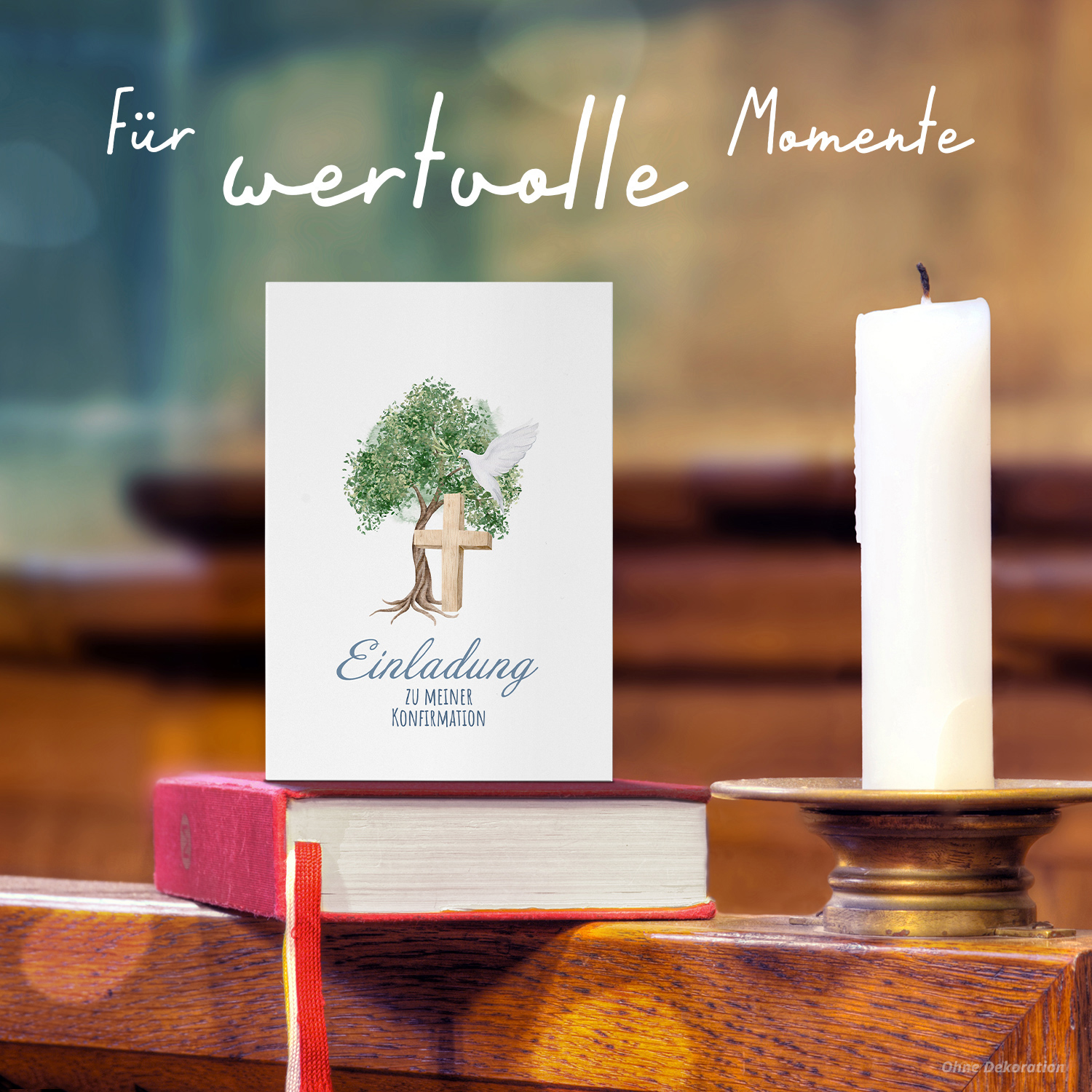 Die Einladung zur Konfirmation ist der erste festliche Gruß zu einem der bedeutendsten Ereignisse im christlichen Leben. Mit einer hochwertigen Einladungskarte zur Konfirmation laden Sie Familie, Freunde und Paten stilvoll zu diesem besonderen Tag ein. Unsere Karten überzeugen durch edles Design, sorgfältige Verarbeitung und christliche Symbolik.