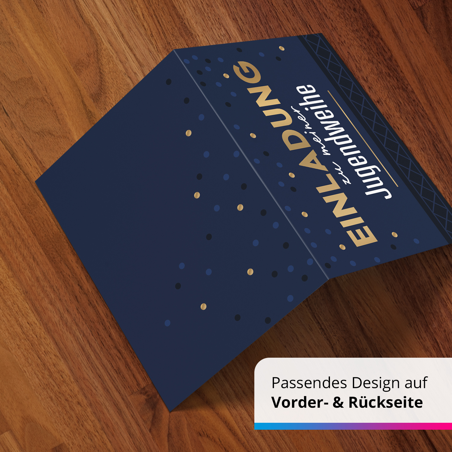 Unsere Einladungskarten zur Jugendweihe verbinden modernes Design, harmonische Farben und hochwertige Verarbeitung. Sie sind ideal, um Familie und Freunde stilvoll zu einem bedeutsamen Schritt auf dem Weg ins Erwachsenenleben einzuladen. Die sorgfältig gestalteten Karten setzen einen festlichen und zugleich persönlichen Akzent.