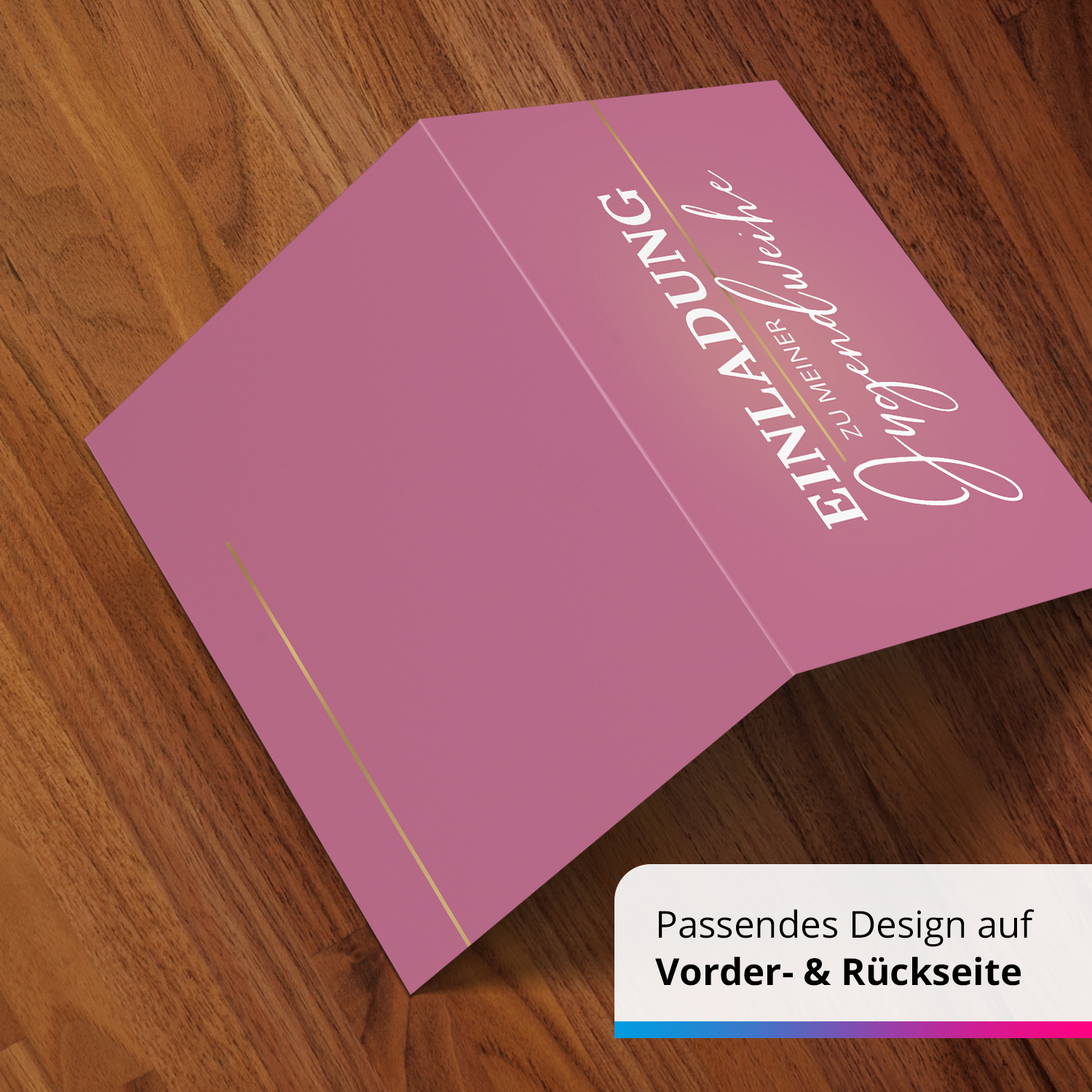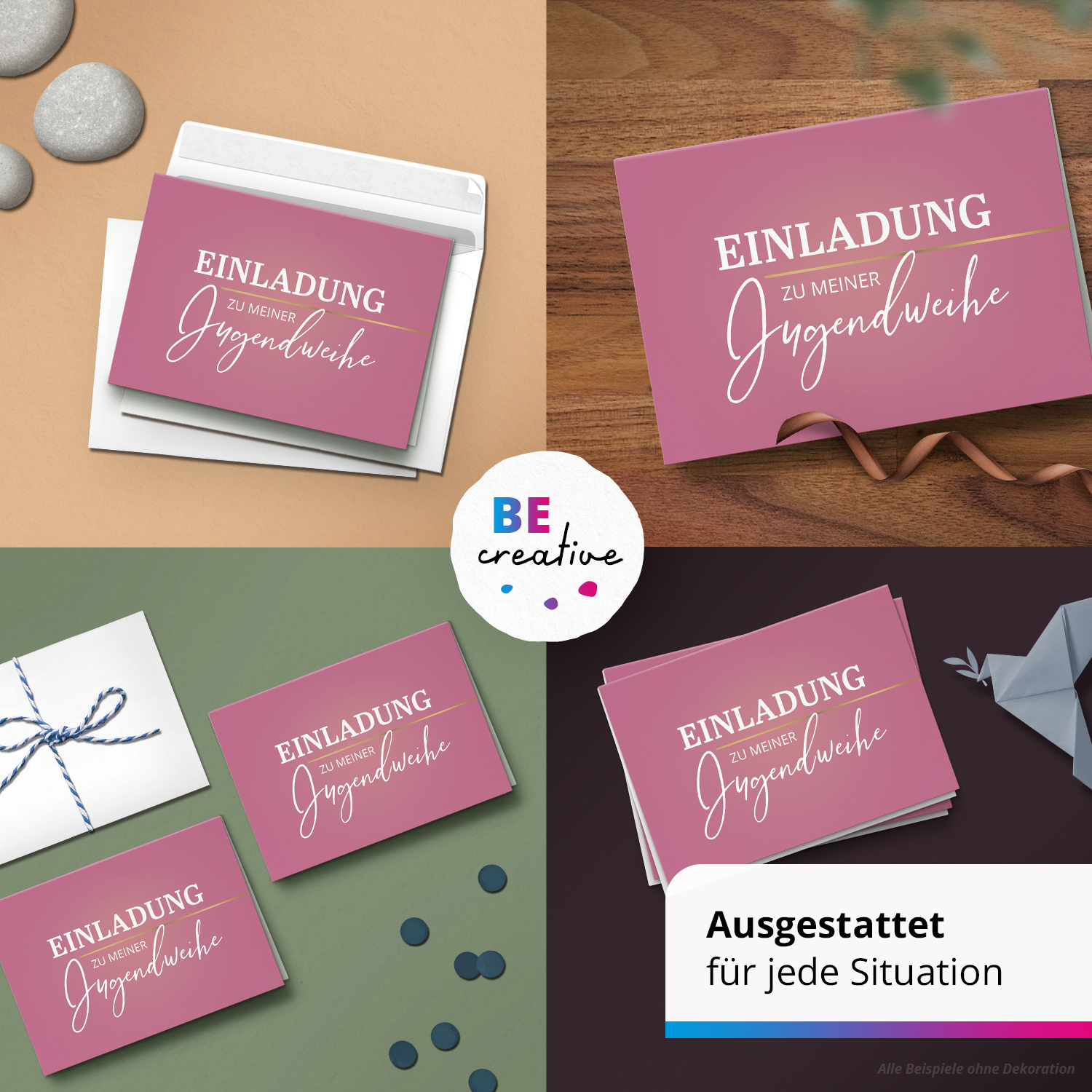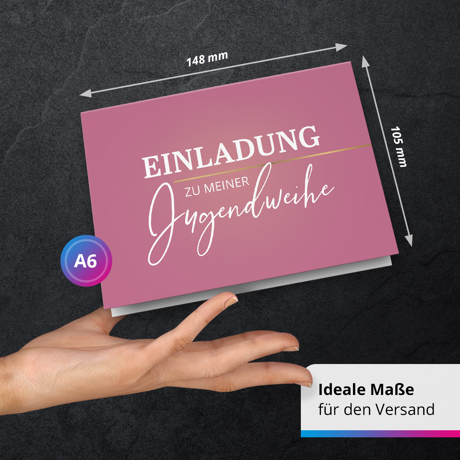 Mit diesen Einladungskarten zur Jugendweihe beginnt Ihr besonderer Tag bereits mit einem festlichen, eleganten und durchdachten Auftakt. Die Karten sind ideal, um einen harmonischen, modernen und persönlichen Eindruck zu hinterlassen.