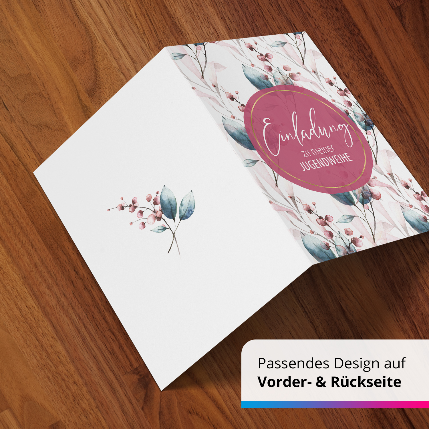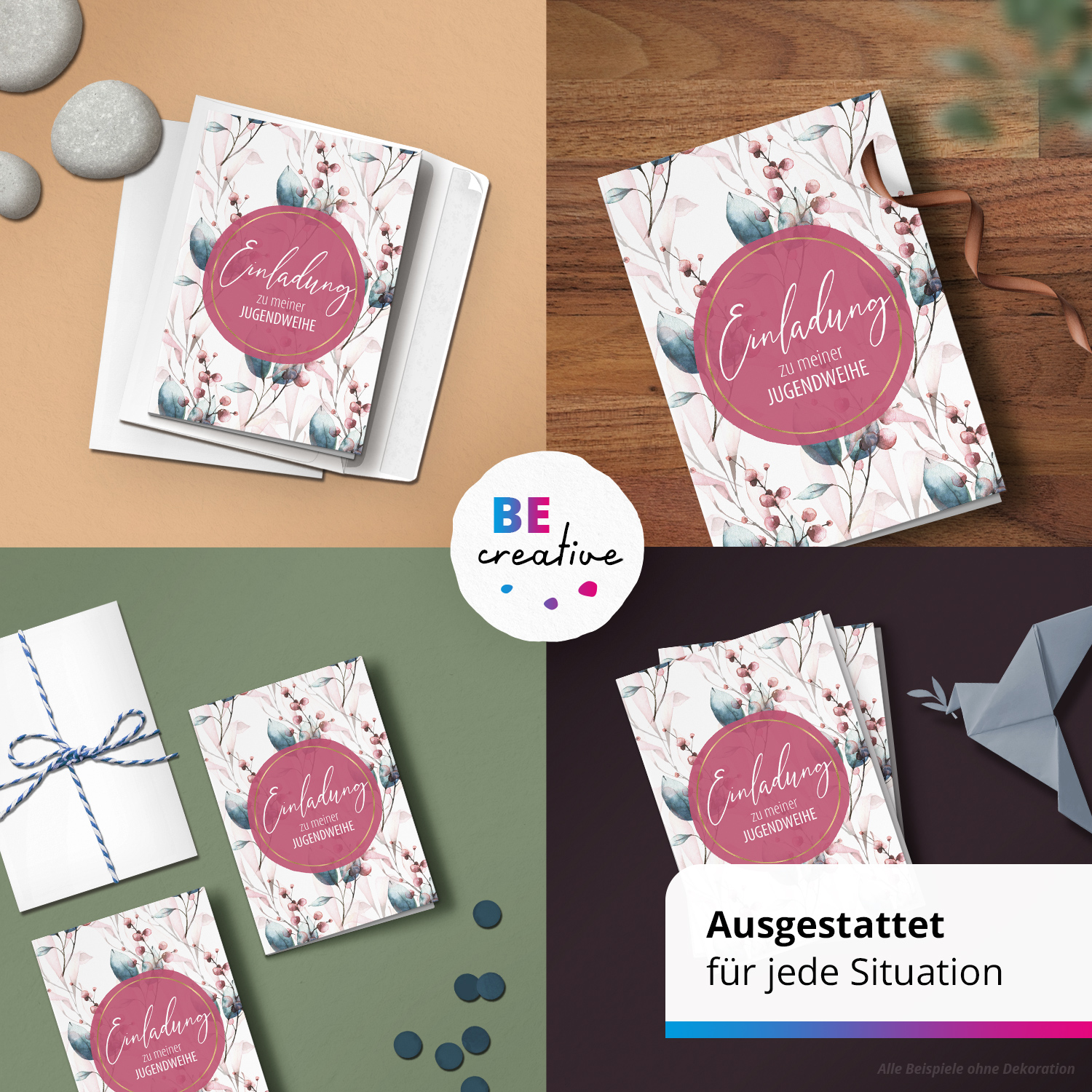Mit diesen Einladungskarten zur Jugendweihe beginnt Ihr besonderer Tag bereits mit einem festlichen, eleganten und durchdachten Auftakt. Die Karten sind ideal, um einen harmonischen, modernen und persönlichen Eindruck zu hinterlassen.