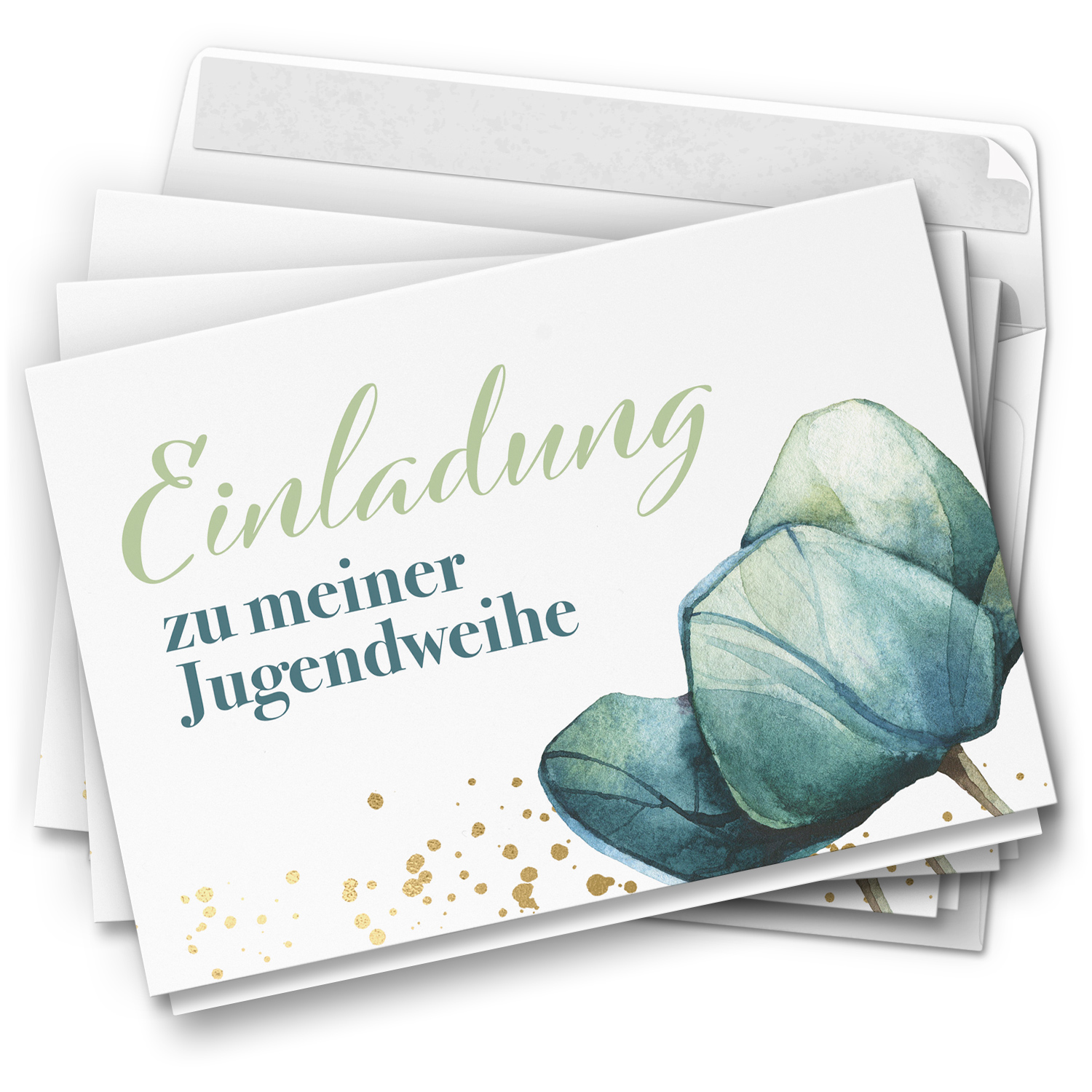 10 Jugendweihe Einladungskarten – Motiv Modern Edel Blätter – moderne Einladungen Klappkarten mit Umschlägen
