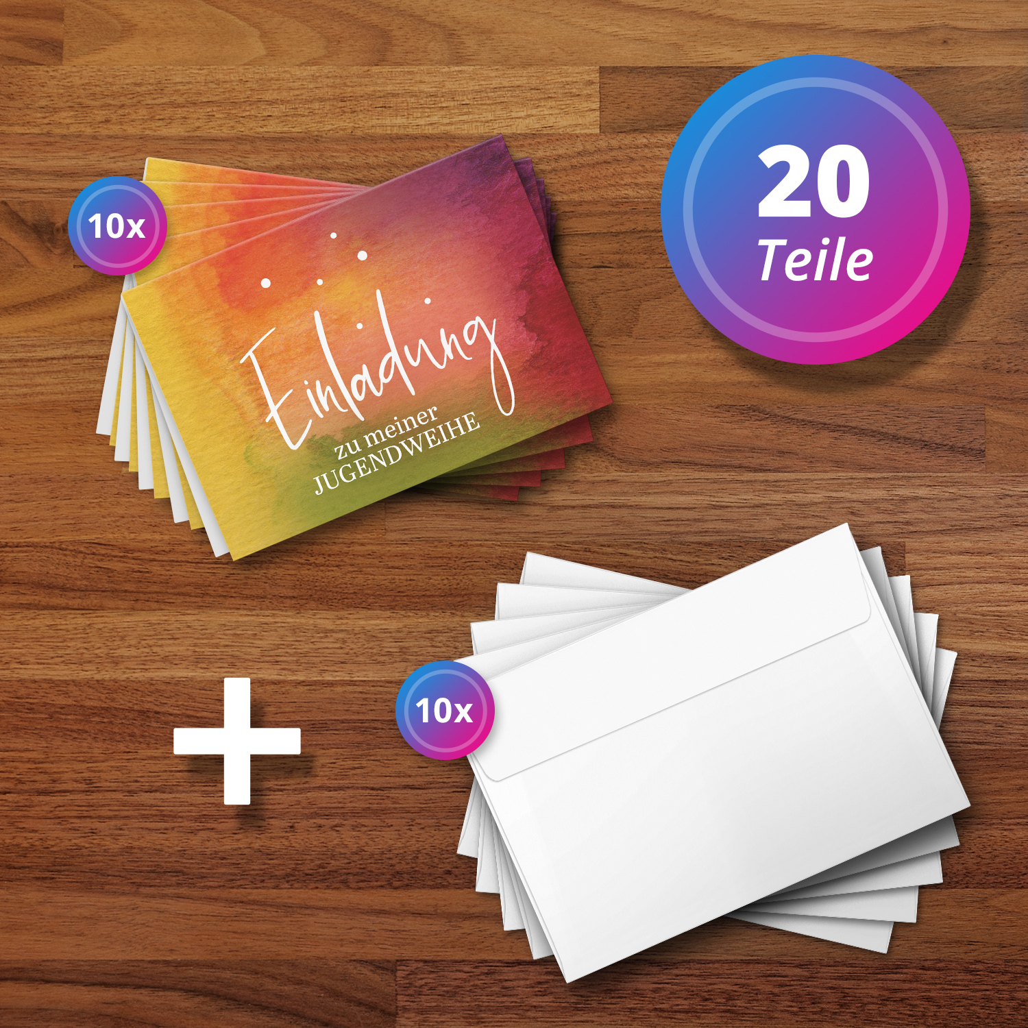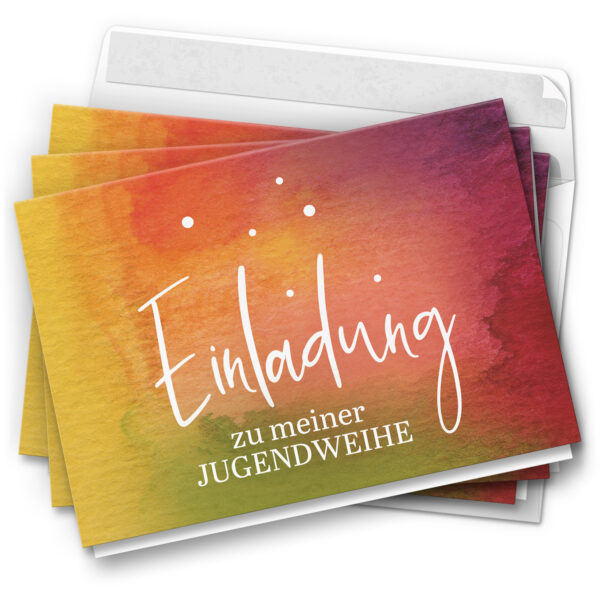 10 Jugendweihe Einladungskarten – Motiv Regenbogen Aquarell – moderne Einladungen Klappkarten mit Umschlägen
