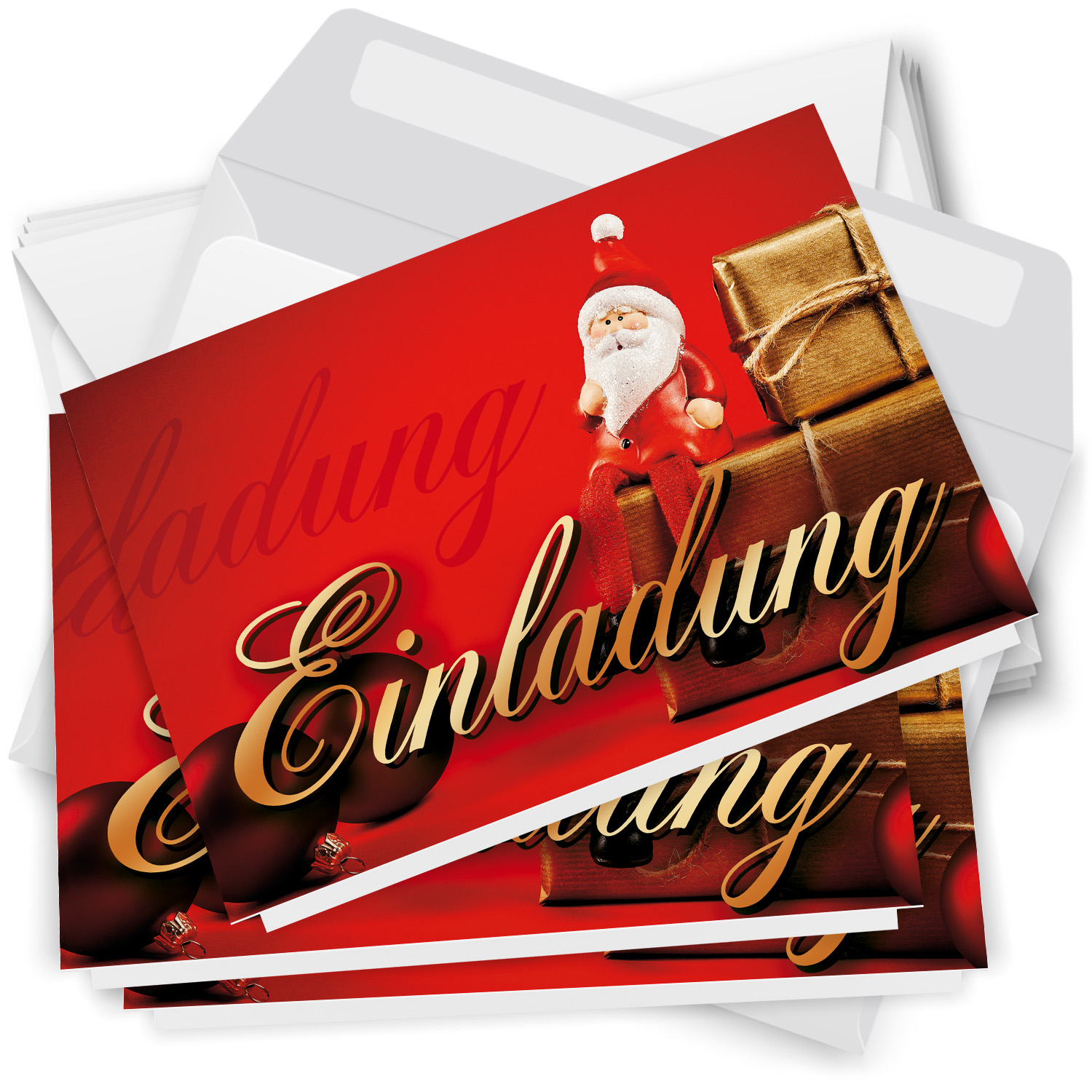 10 x Einladungskarten Klappkarten Weihnachten mit Umschlägen zur Weihnachtsfeier Motiv Weihnachtsmann rot