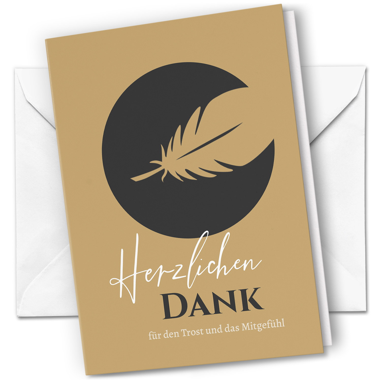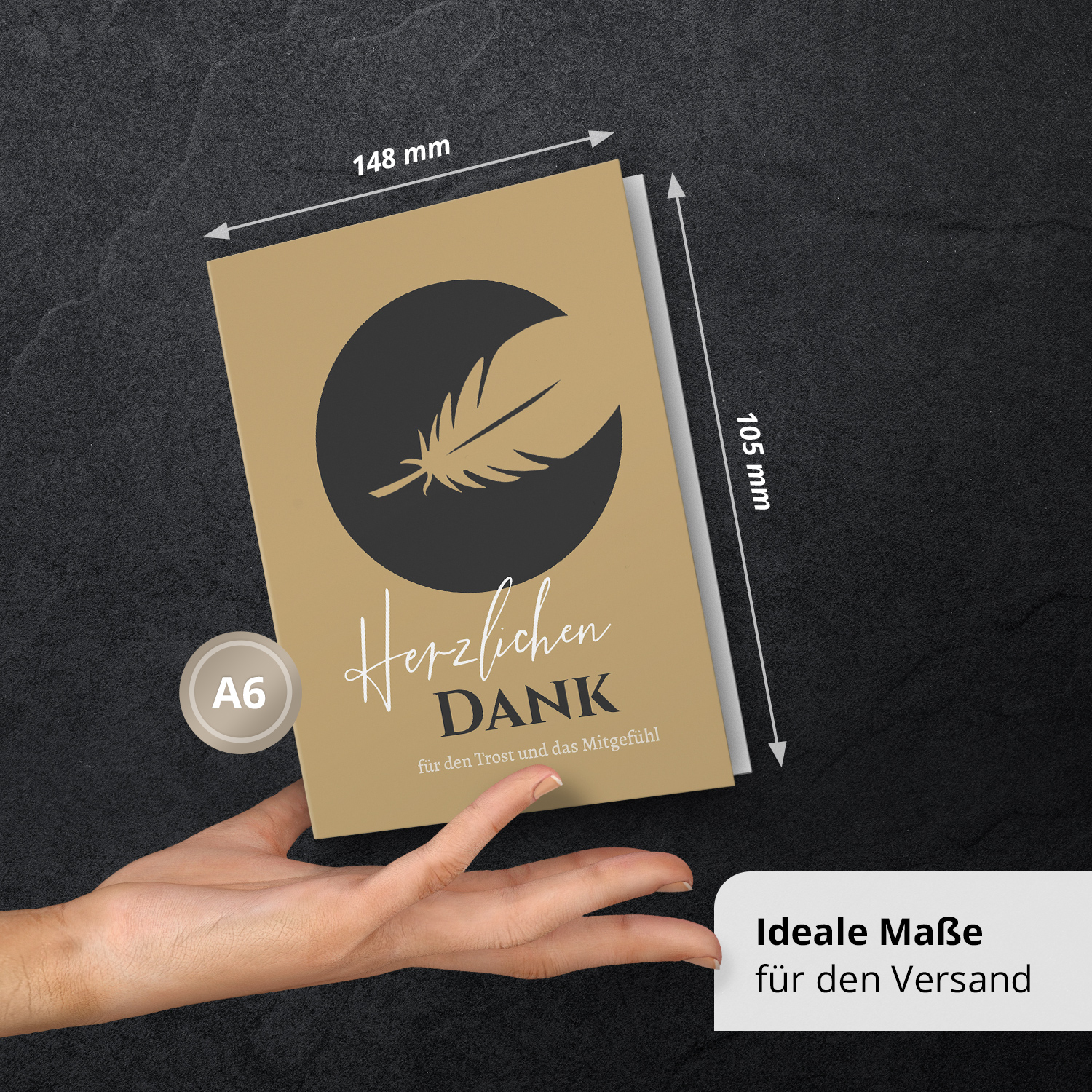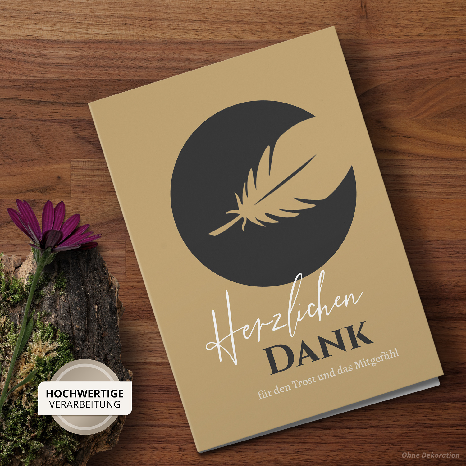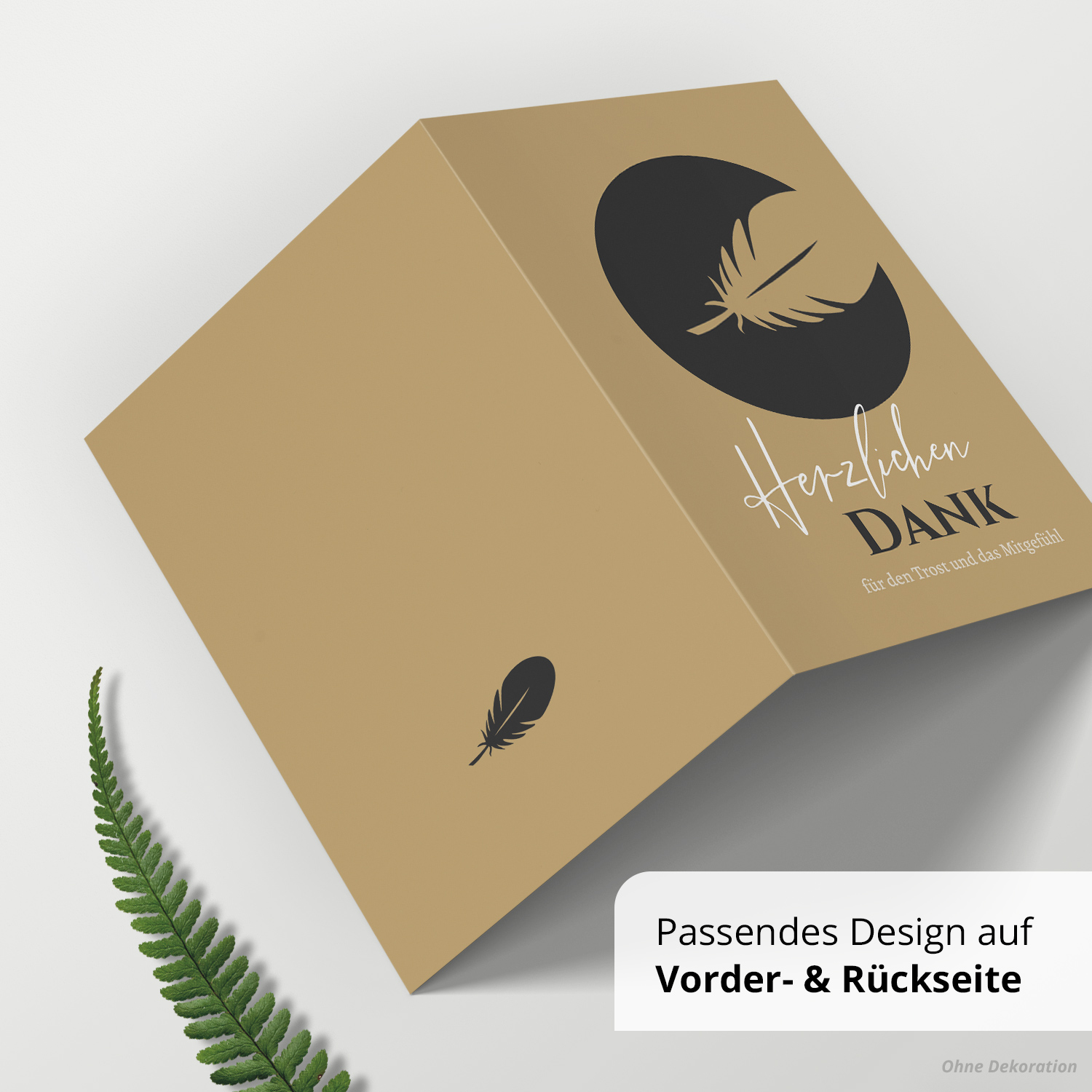 10 x Trauer Danksagungskarten Klappkarten mit Umschlag DIN A6, Trauerkarten Feder Kreis, Danke Sagen nach Beerdigung, Trauerfall