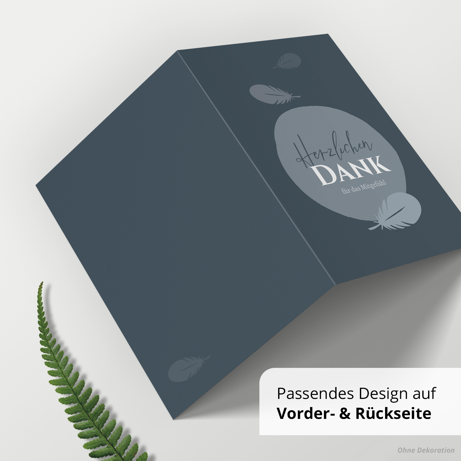 10 x Trauer Danksagungskarten Klappkarten mit Umschlag DIN A6, Trauerkarten Federn blau grau, Danke Sagen nach Beerdigung, Trauerfall