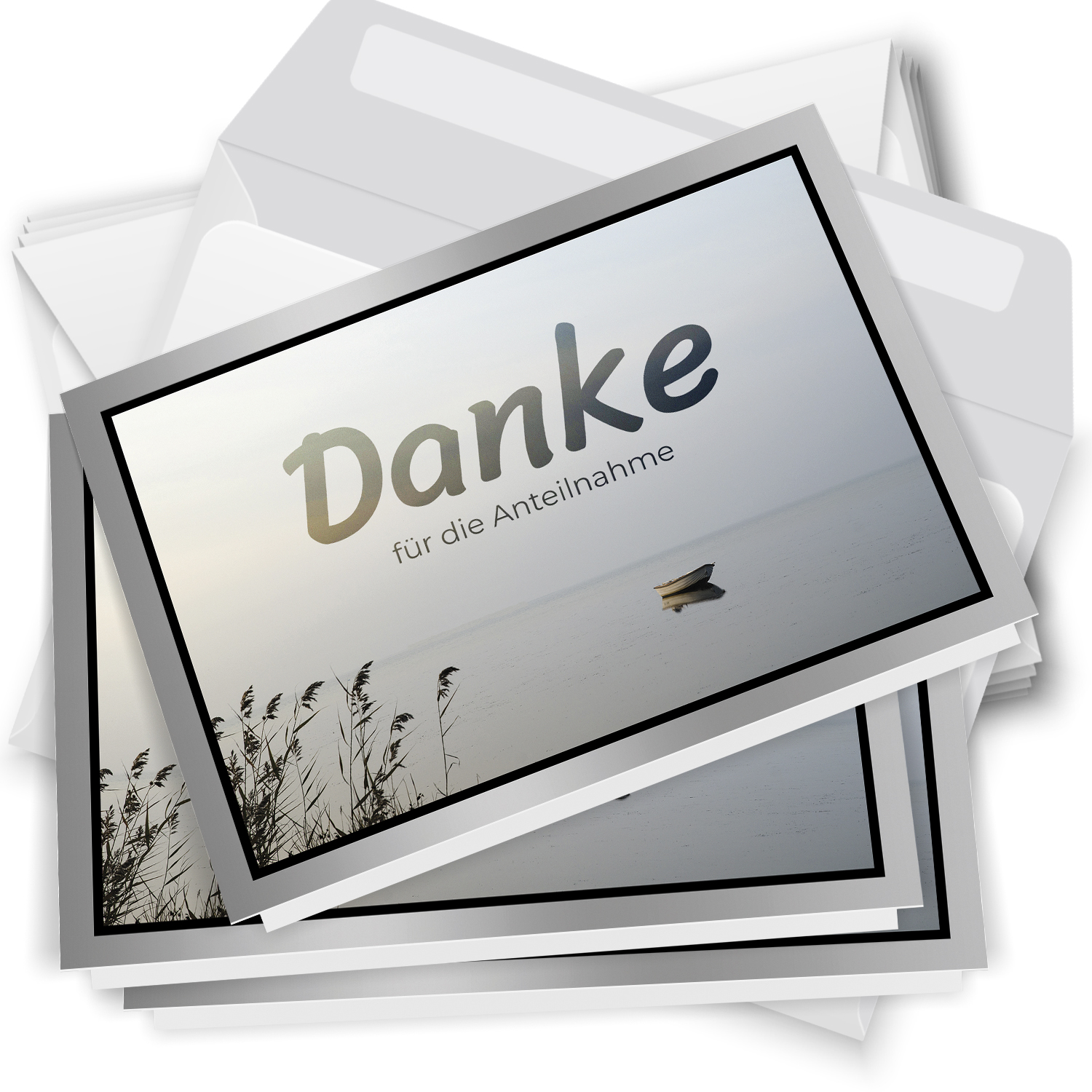 Trauer Danksagungskarten im 10er Set – schlichte Klappkarten mit Umschlägen. Ideal für einen respektvollen Dank im Trauerfall.