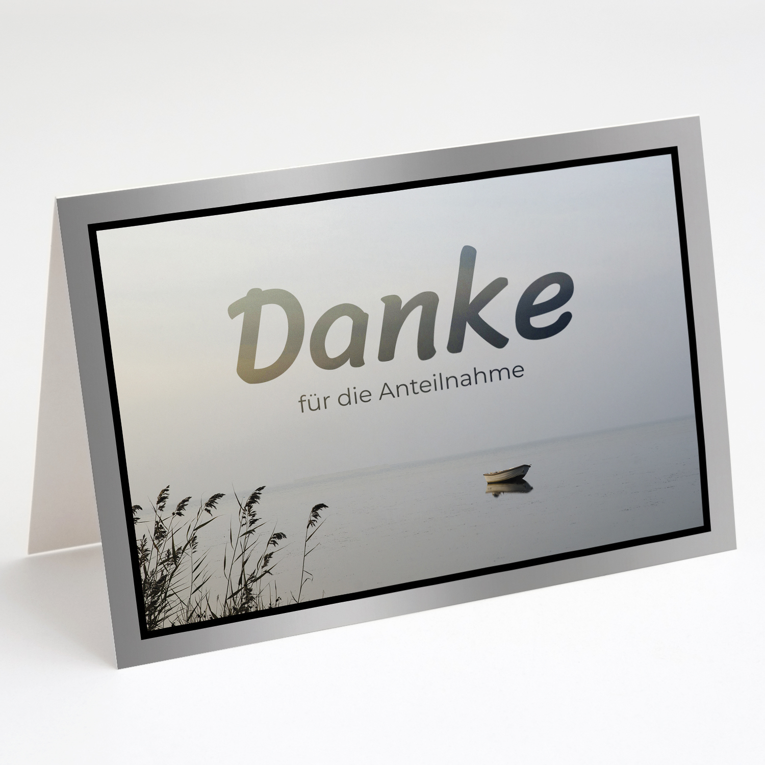10 x Trauer Danksagungskarten Klappkarten mit Umschlag DIN A6, Trauerkarten Motiv Boot See Steg, Danke Sagen nach Beerdigung, Trauerfall