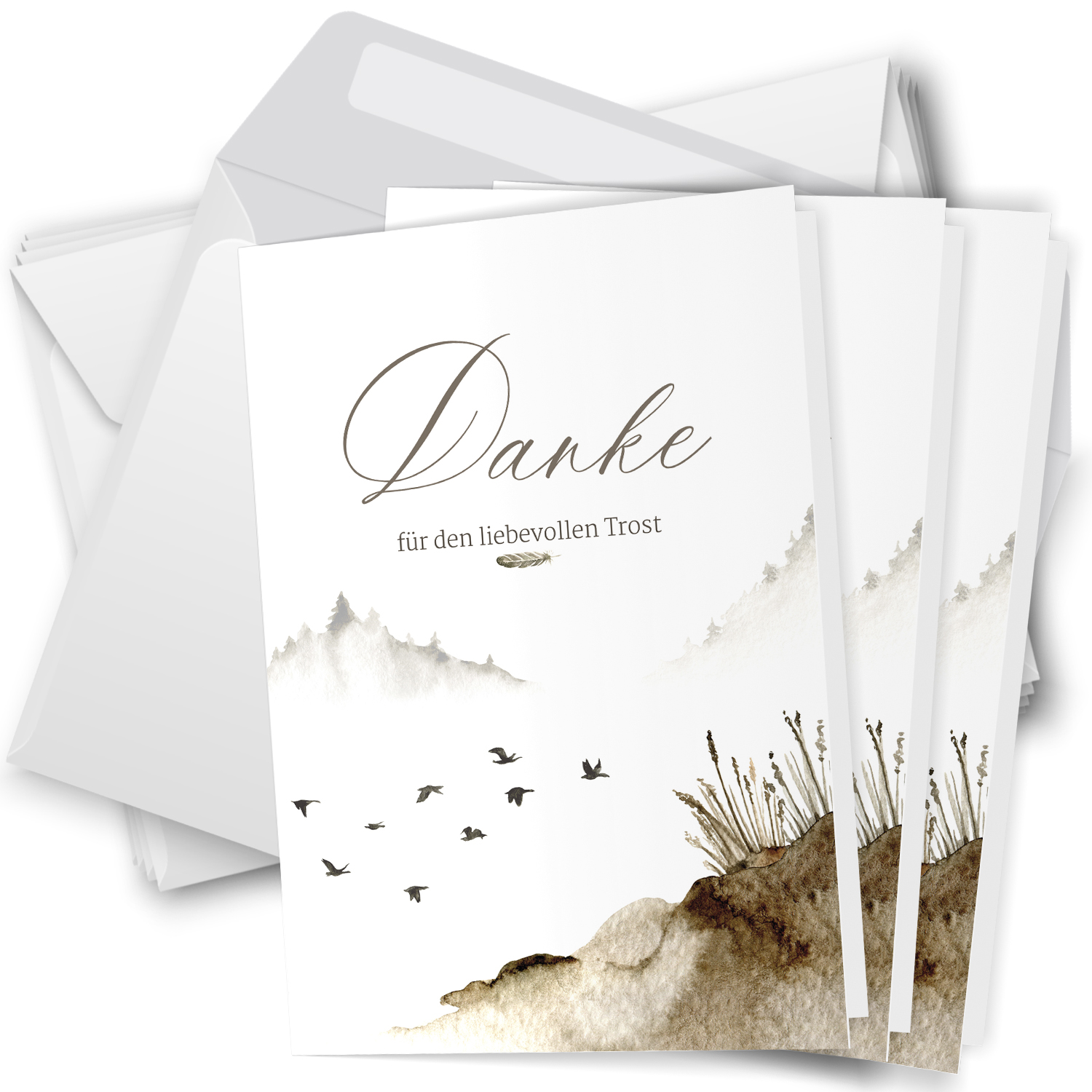 Trauer Danksagungskarten – 10 Klappkarten mit Umschlägen