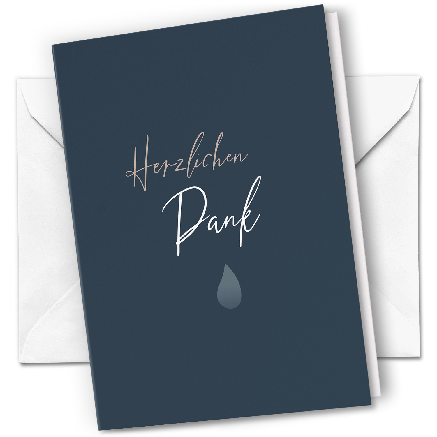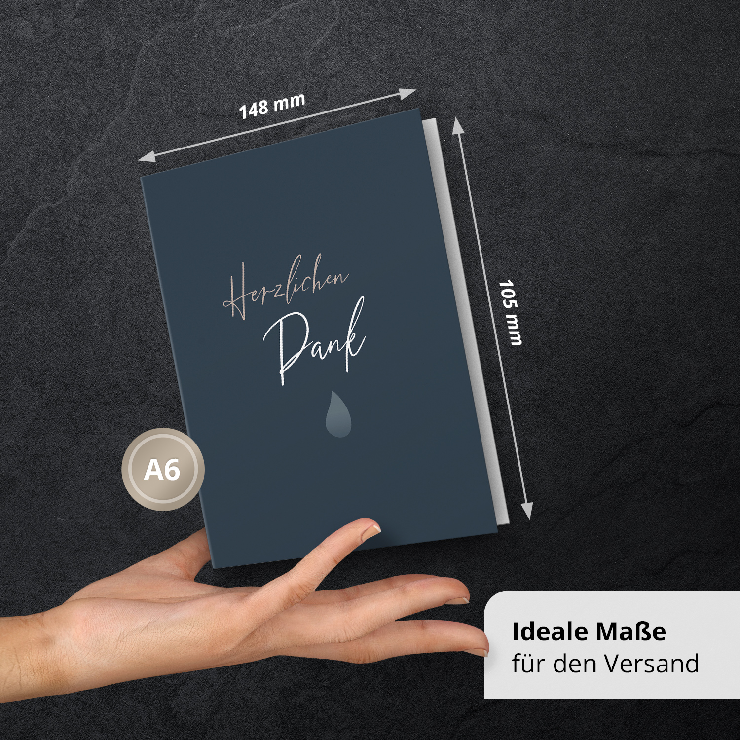 10 x Trauer Danksagungskarten Klappkarten mit Umschlag DIN A6, Trauerkarten Träne Tropfen, Danke Sagen nach Beerdigung, Trauerfall