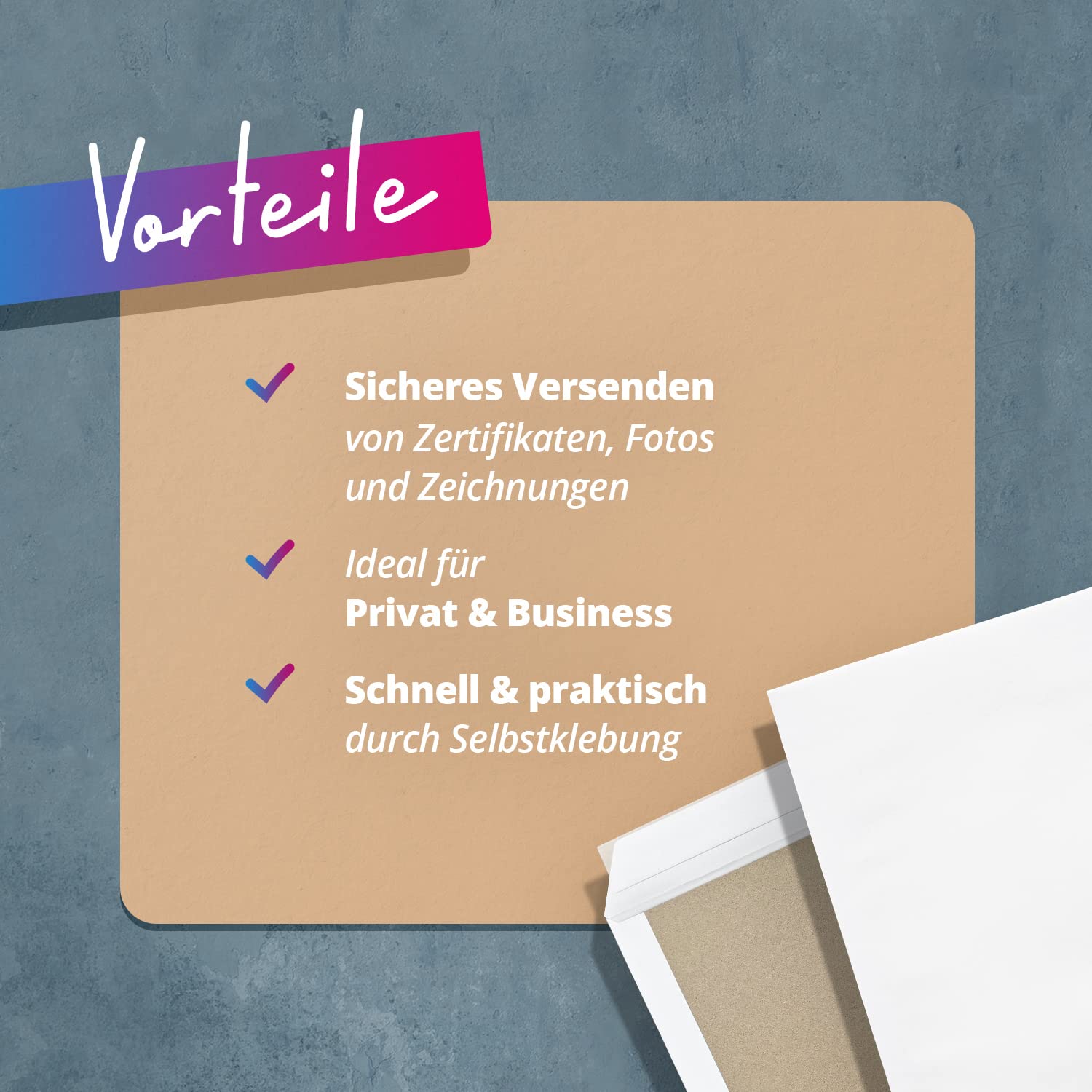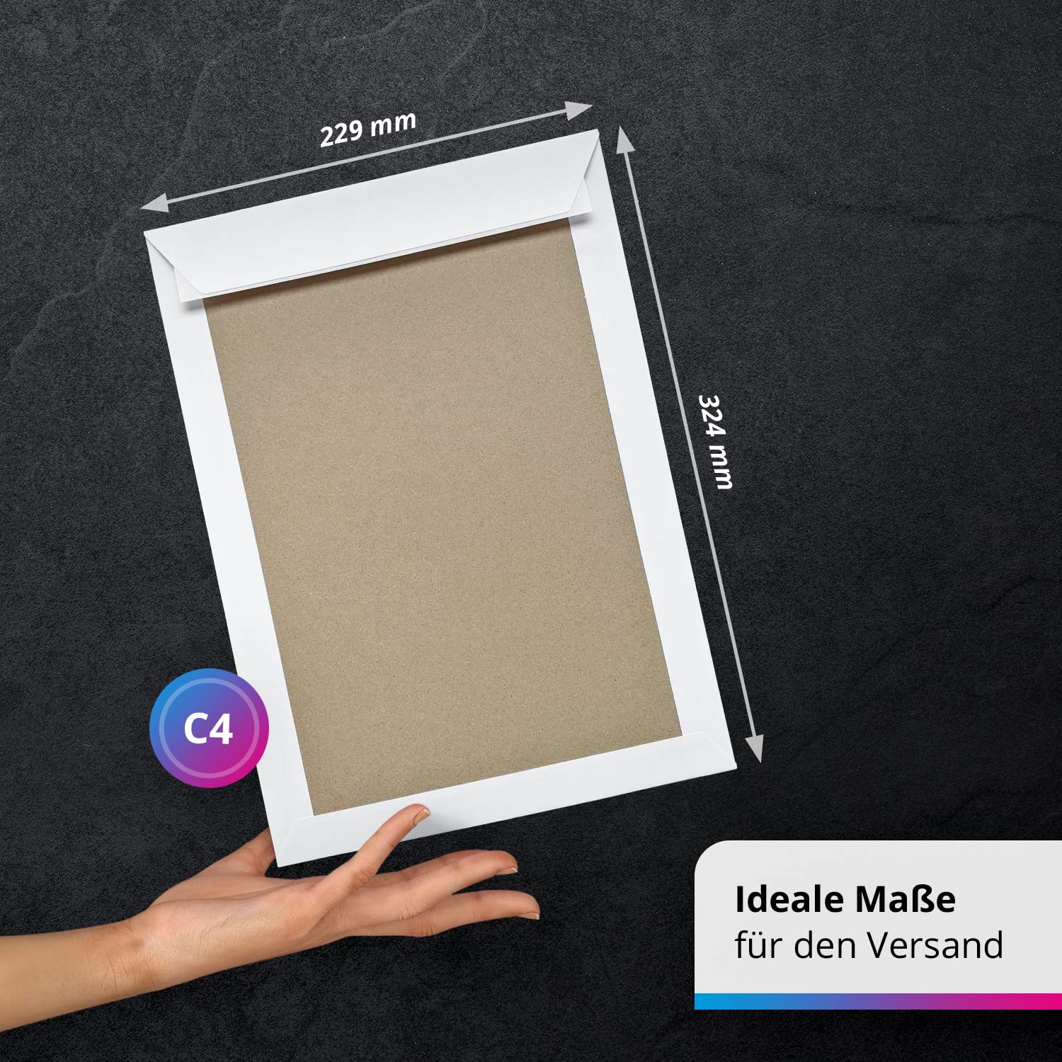 125 x Briefumschläge DIN C4 mit Papprückwand (229 x 320 mm), gerade Klappe, selbstklebend ohne Fenster, weiß, 120 g/qm Bewerbung