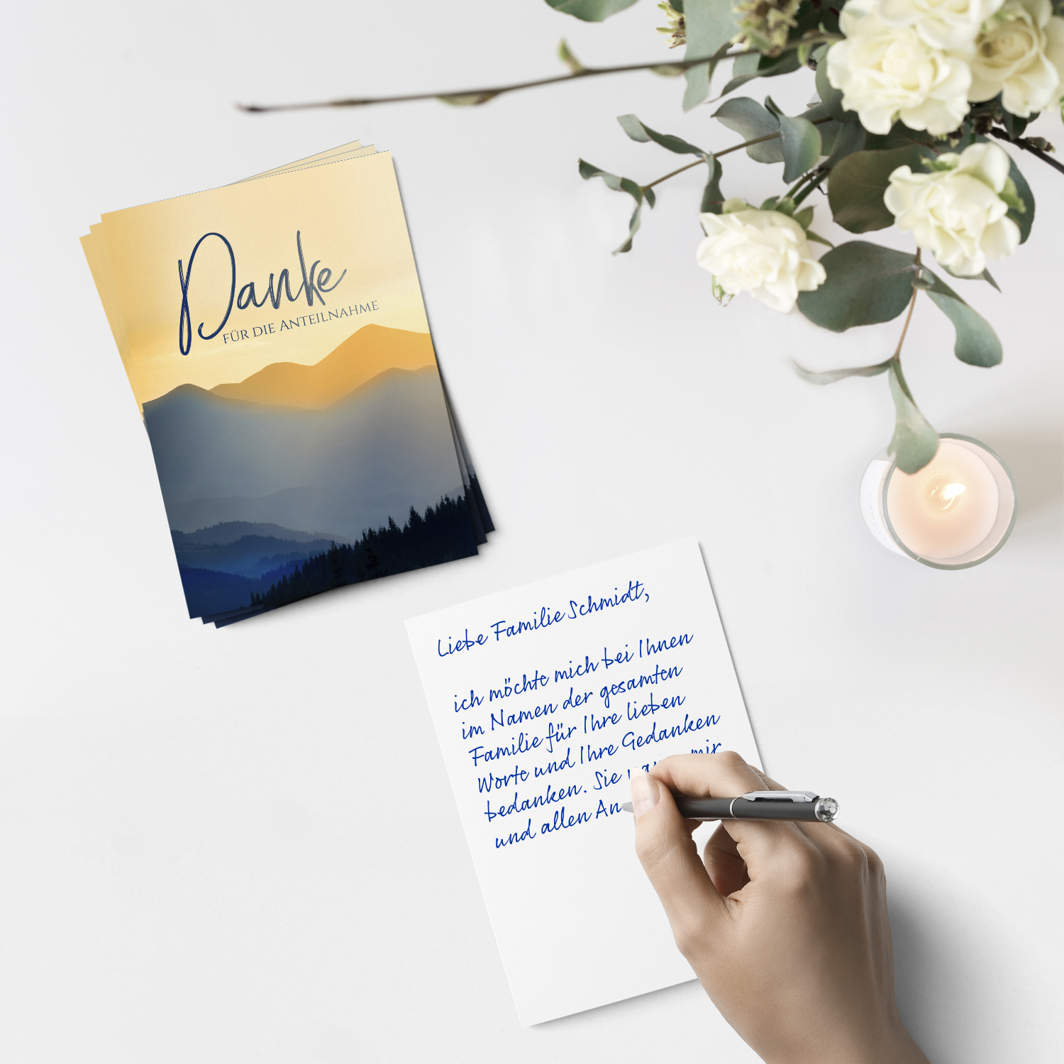 15 Dankeskarten Trauer mit Umschlag Motiv BERGE Karte nach Beerdigung zum Danke sagen Danksagung Trauerkarten Danksagungskarten
