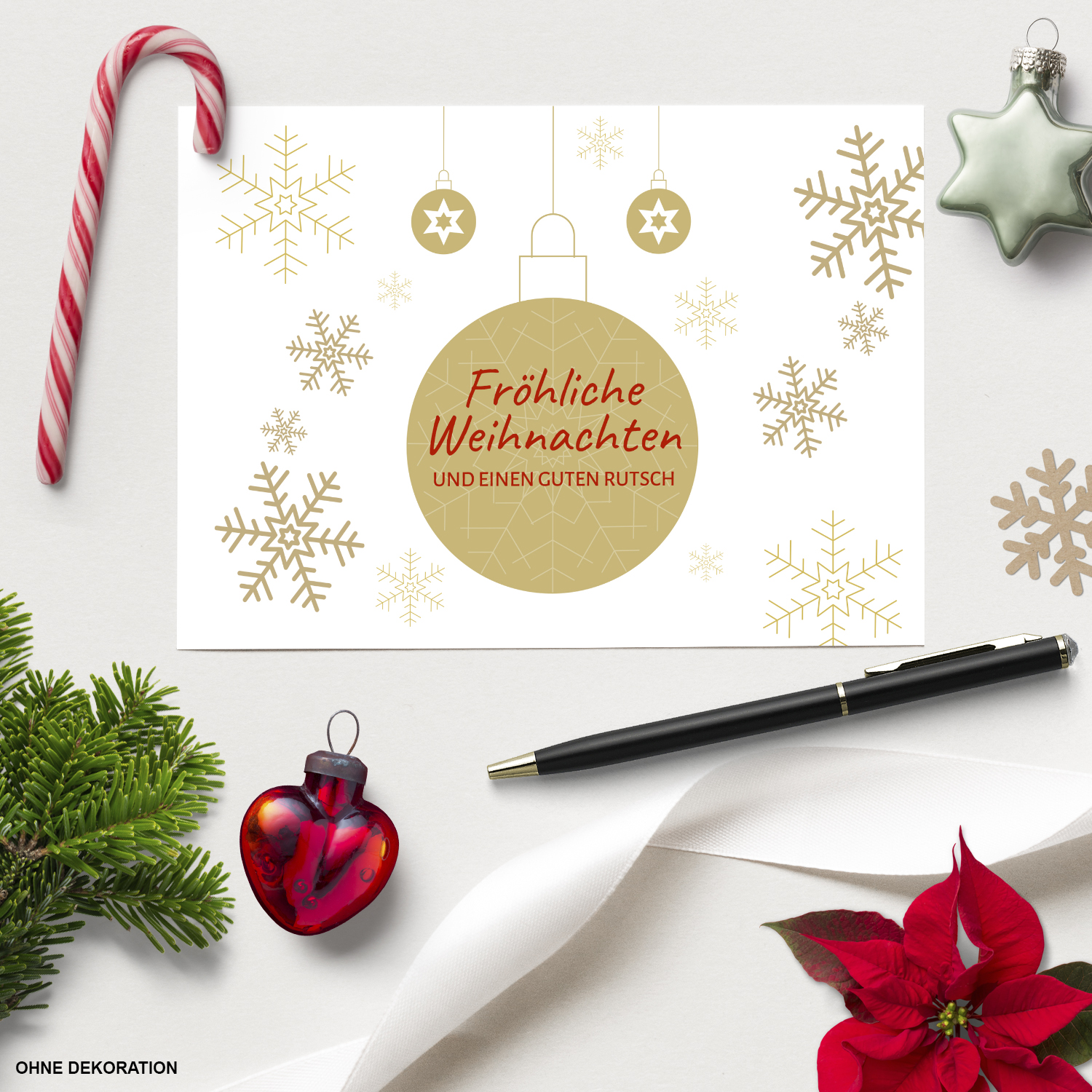 10 Weihnachtskarten Set mit Umschlag Grußkarten Weihnachten Postkarten Format Weihnachtspostkarte Kugeln