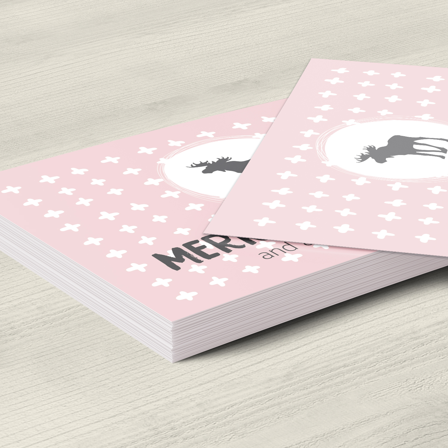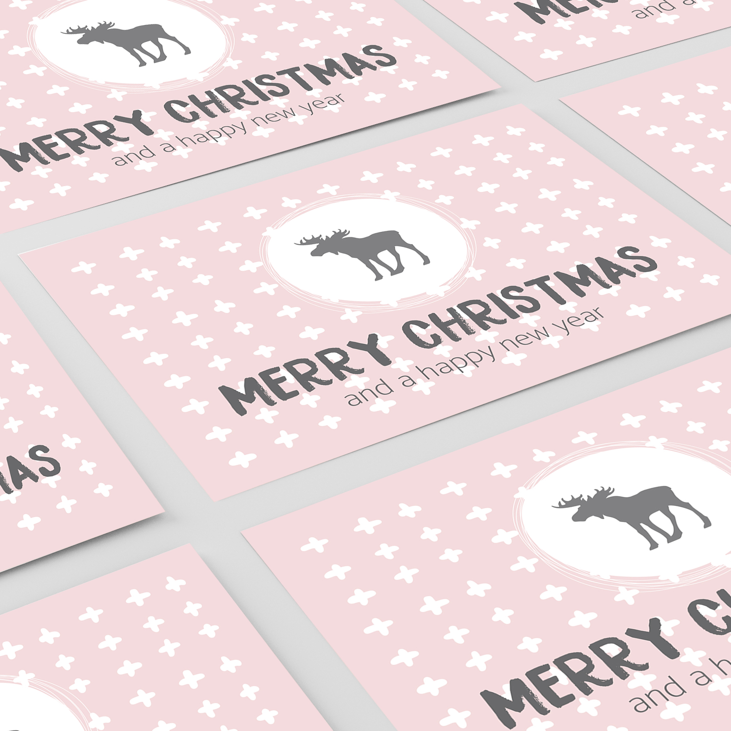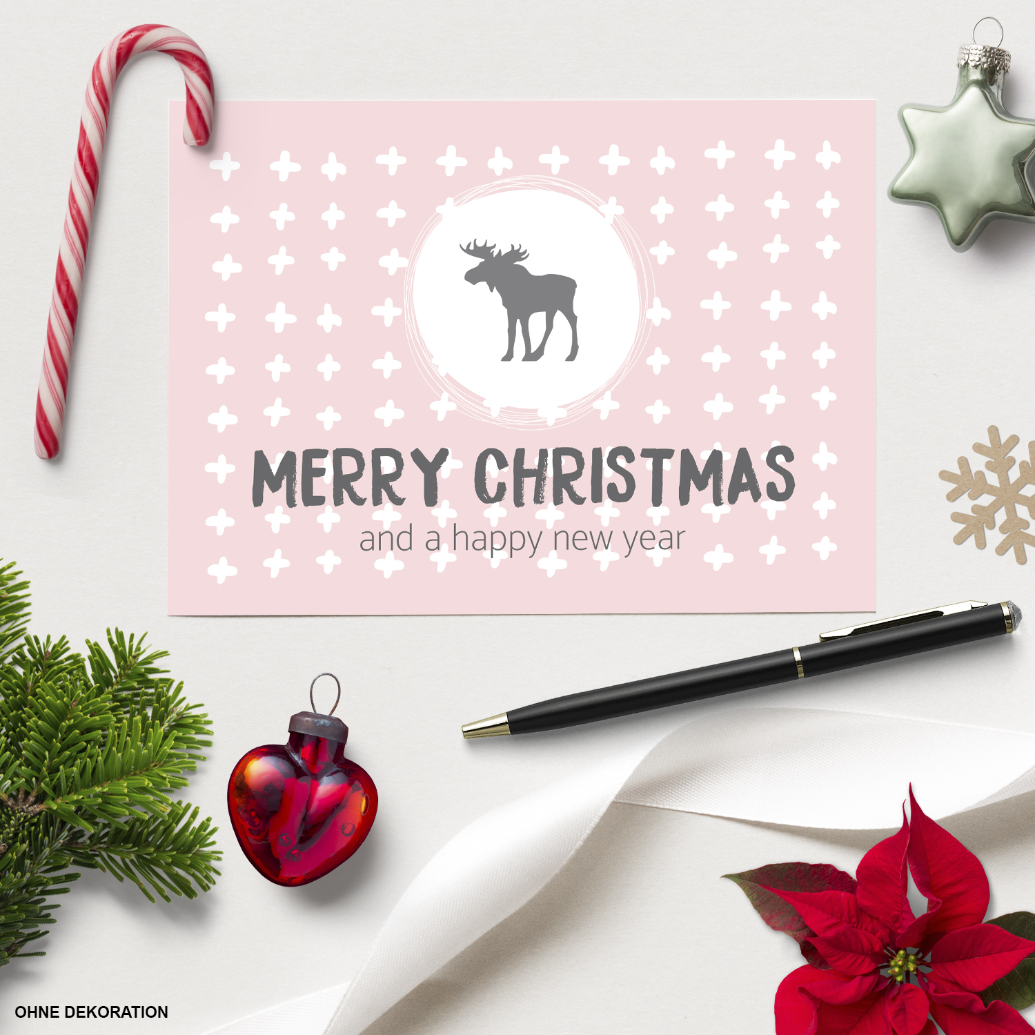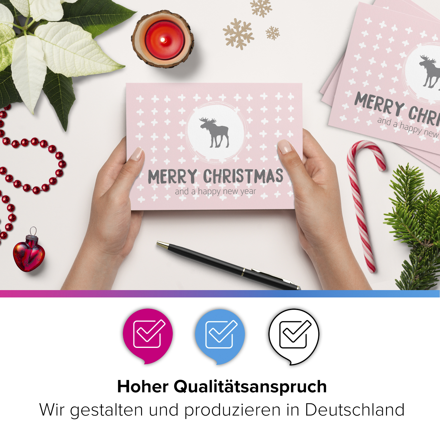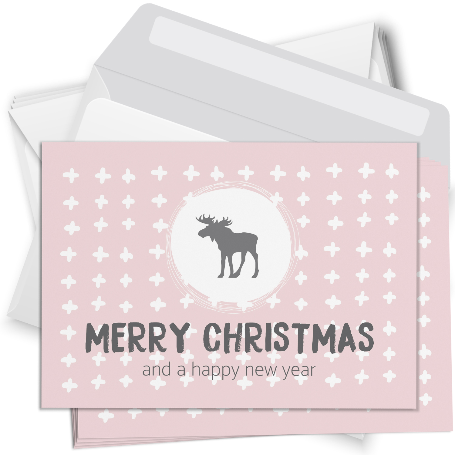 10 Weihnachtskarten Set mit Umschlag Grußkarten Weihnachten Postkarten Format Weihnachtspostkarte rosa Rentier