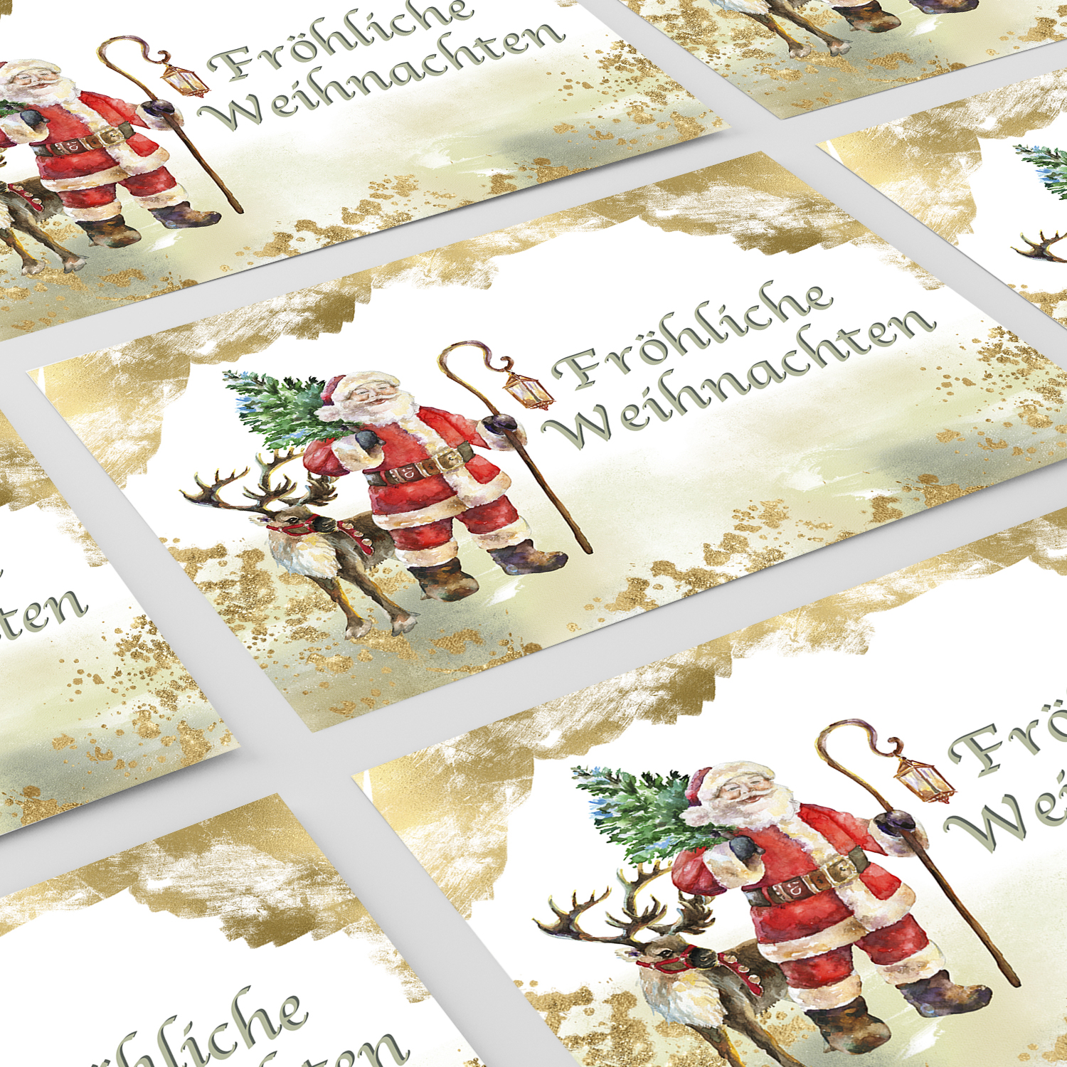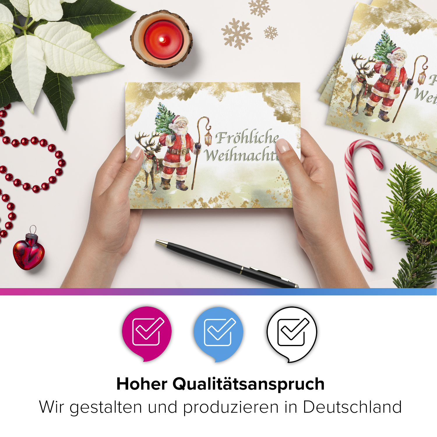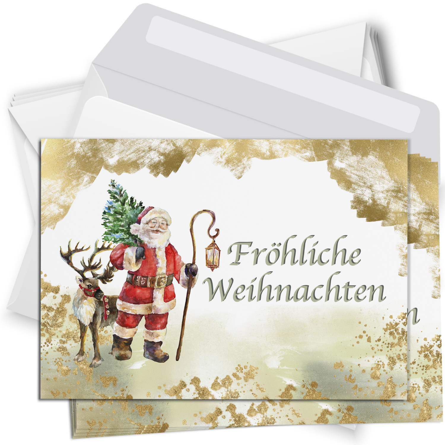 10 Weihnachtskarten Set mit Umschlag Grußkarten Weihnachten Postkarten Format Weihnachtspostkarte Weihnachtsmann gold
