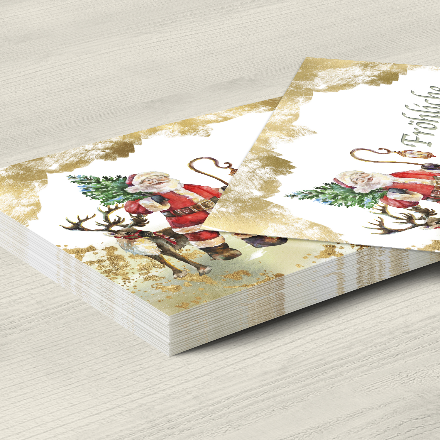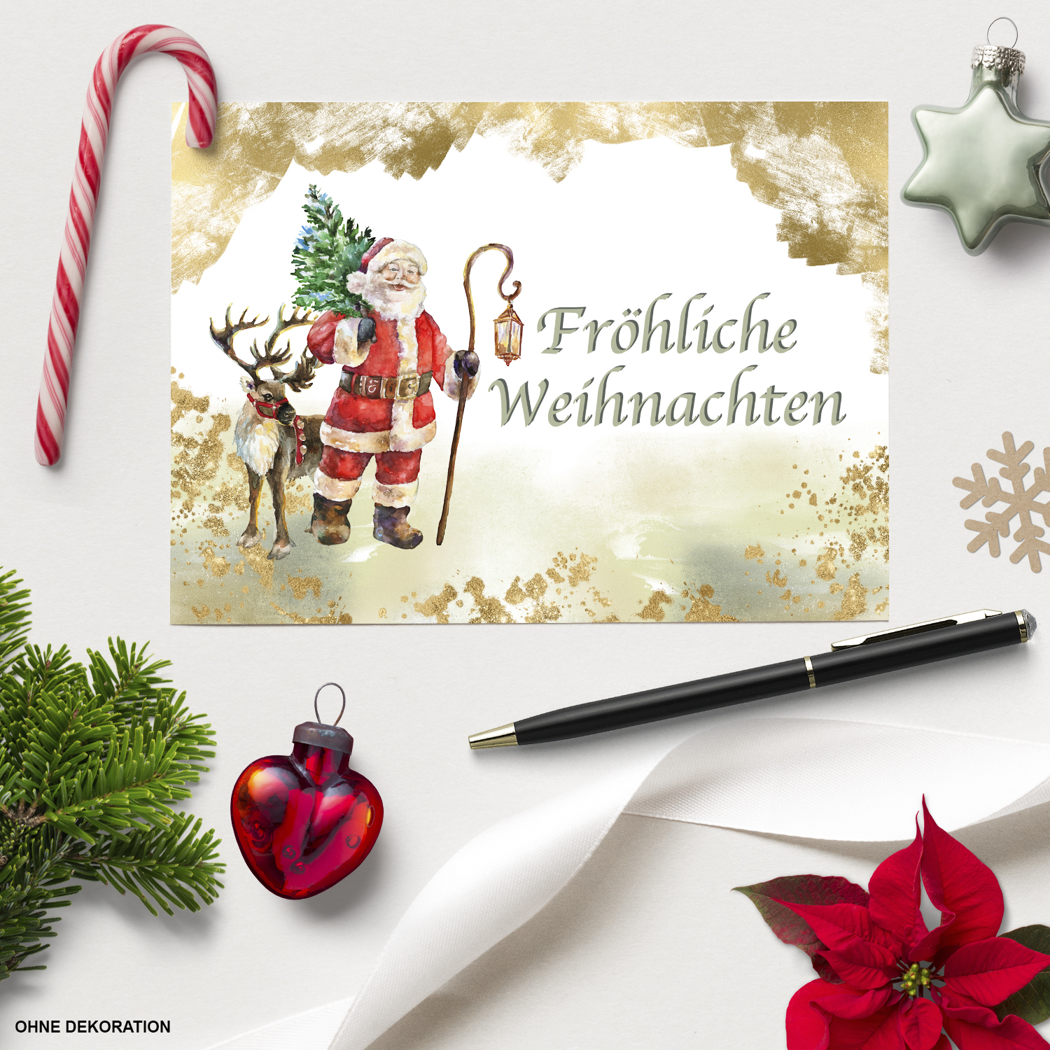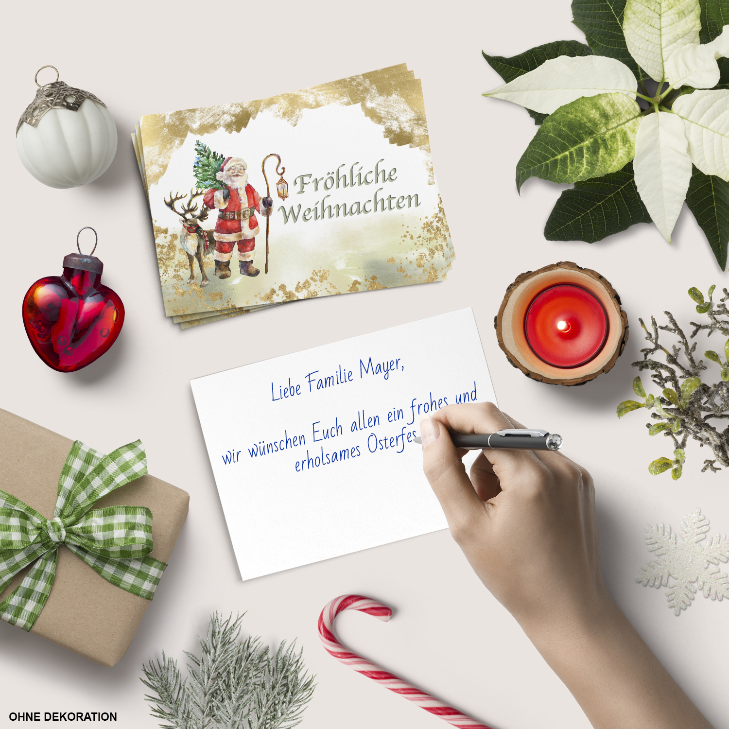 10 Weihnachtskarten Set mit Umschlag Grußkarten Weihnachten Postkarten Format Weihnachtspostkarte Weihnachtsmann gold