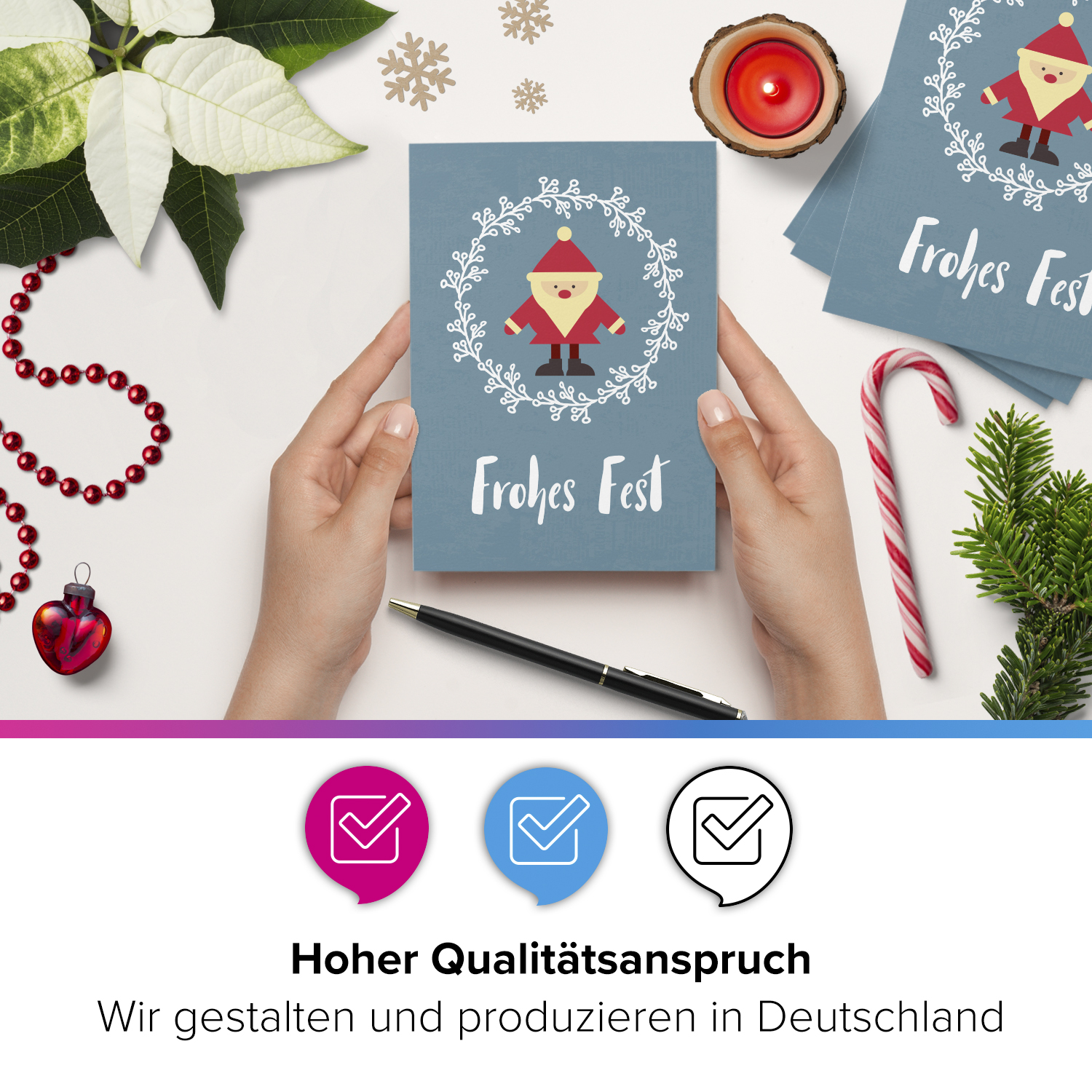 10 x moderne Weihnachtskarten mit Umschlag, Motiv FROHES FEST (blau-grau modern) im Postkarten Format / Weihnachten / Weihnachtsgrußkarte