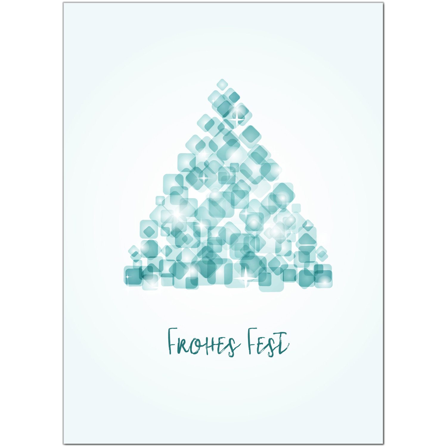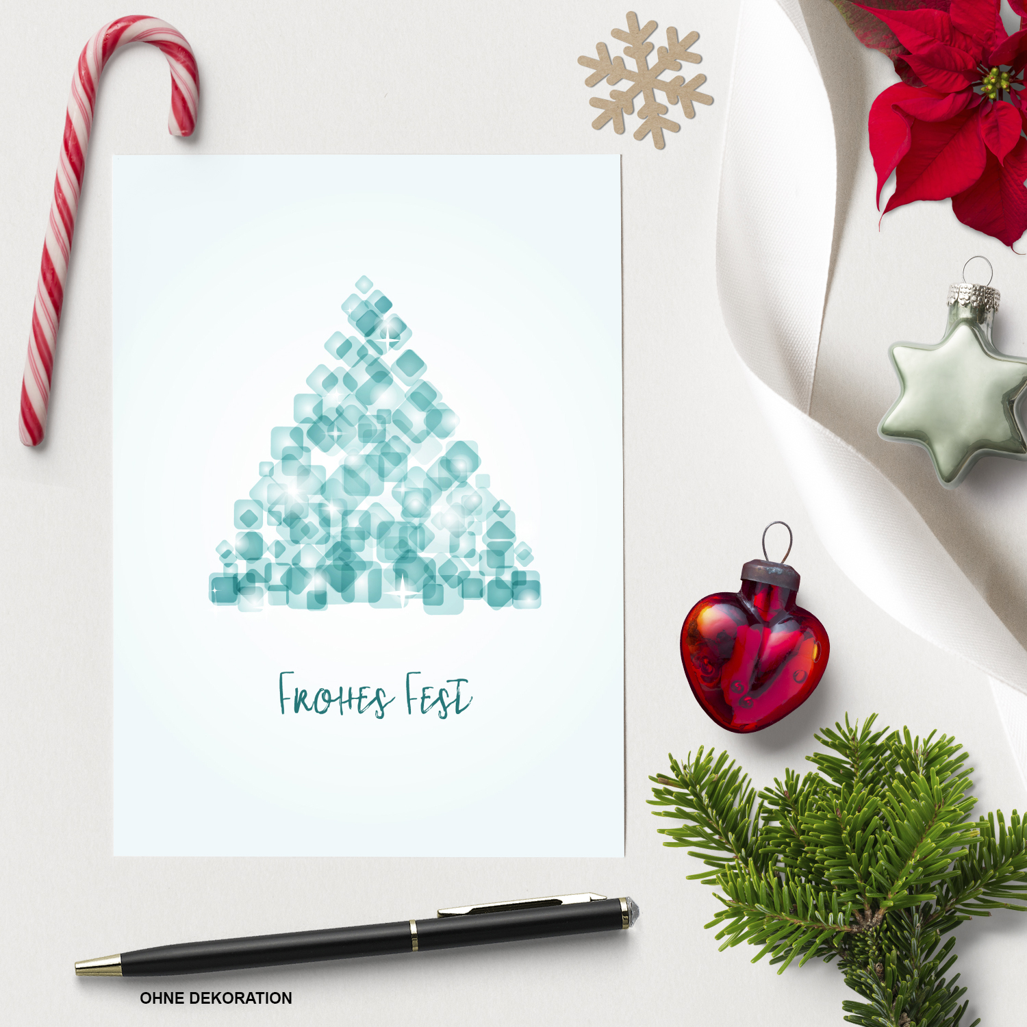10 x moderne Weihnachtskarten mit Umschlag, Motiv Tannenbaum modern (blau, türkis) im Postkarten Format / Weihnachten / Weihnachtspostkarte