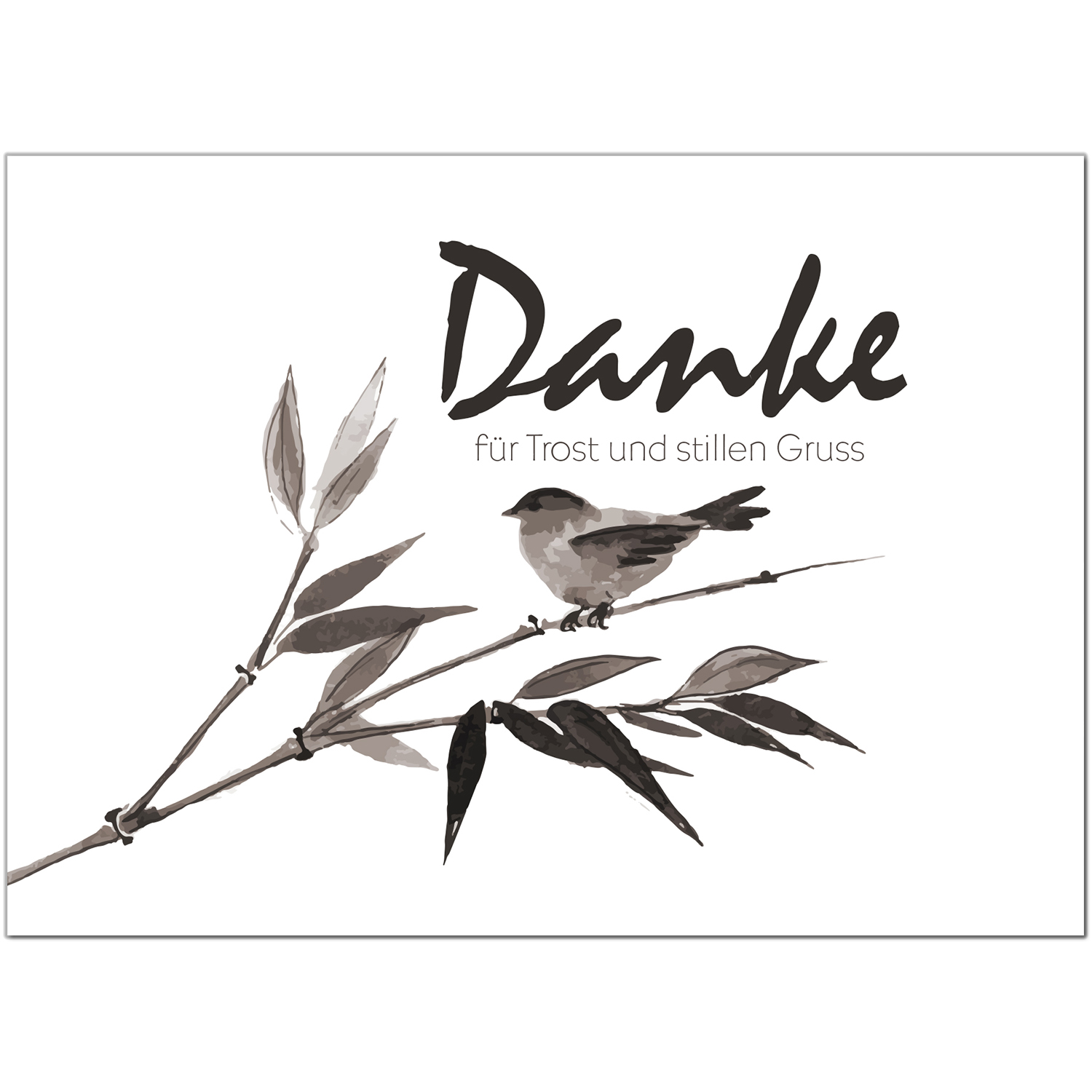 15 x Trauer Danksagungskarten mit Umschlag DIN A6, Motiv Aquarell Look schwarz weisser Vogel, Danke Sagen nach Beerdigung