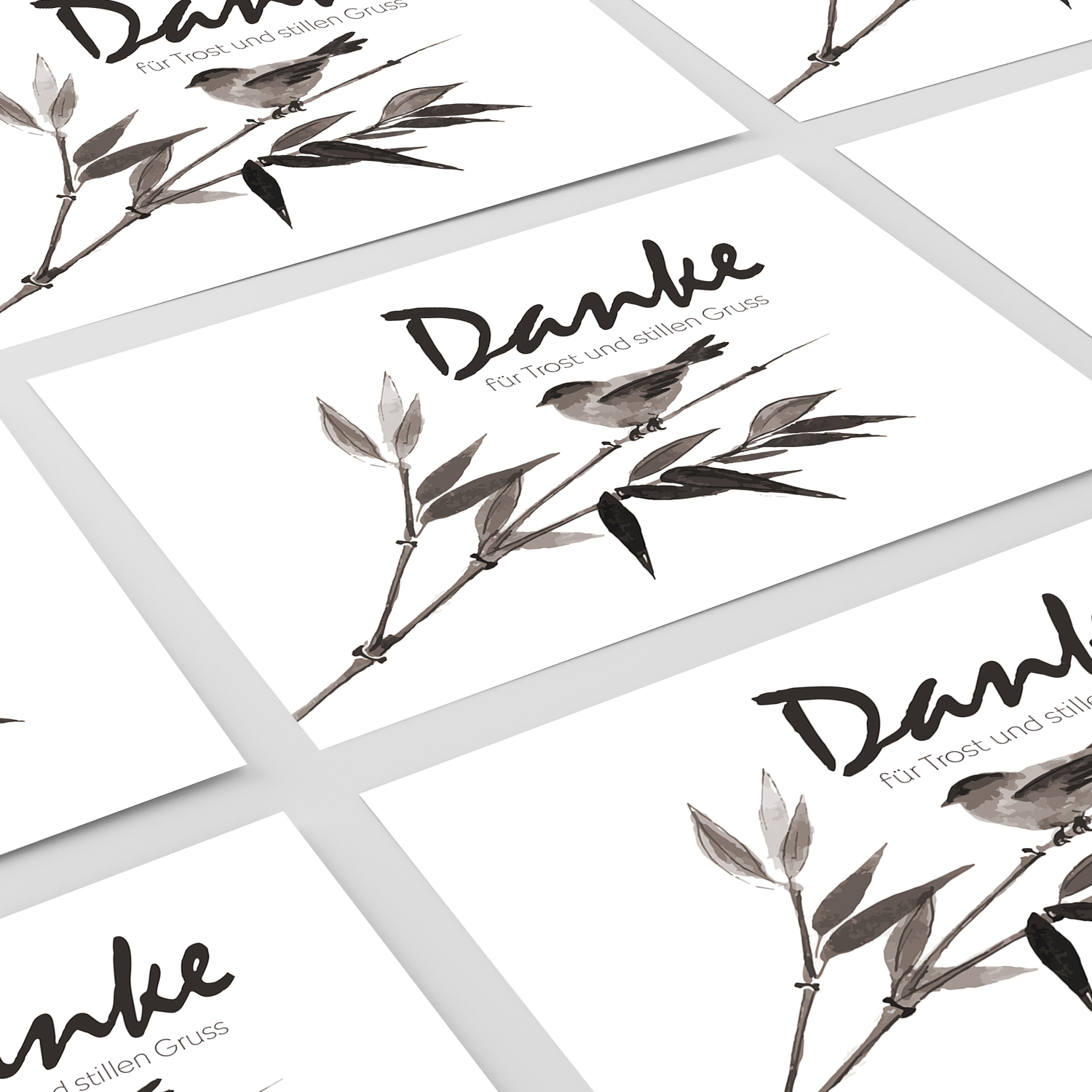 Trauer Danksagungskarten im 10er Set – schlichte Karten mit Umschlägen. Ideal für einen respektvollen Dank im Trauerfall.