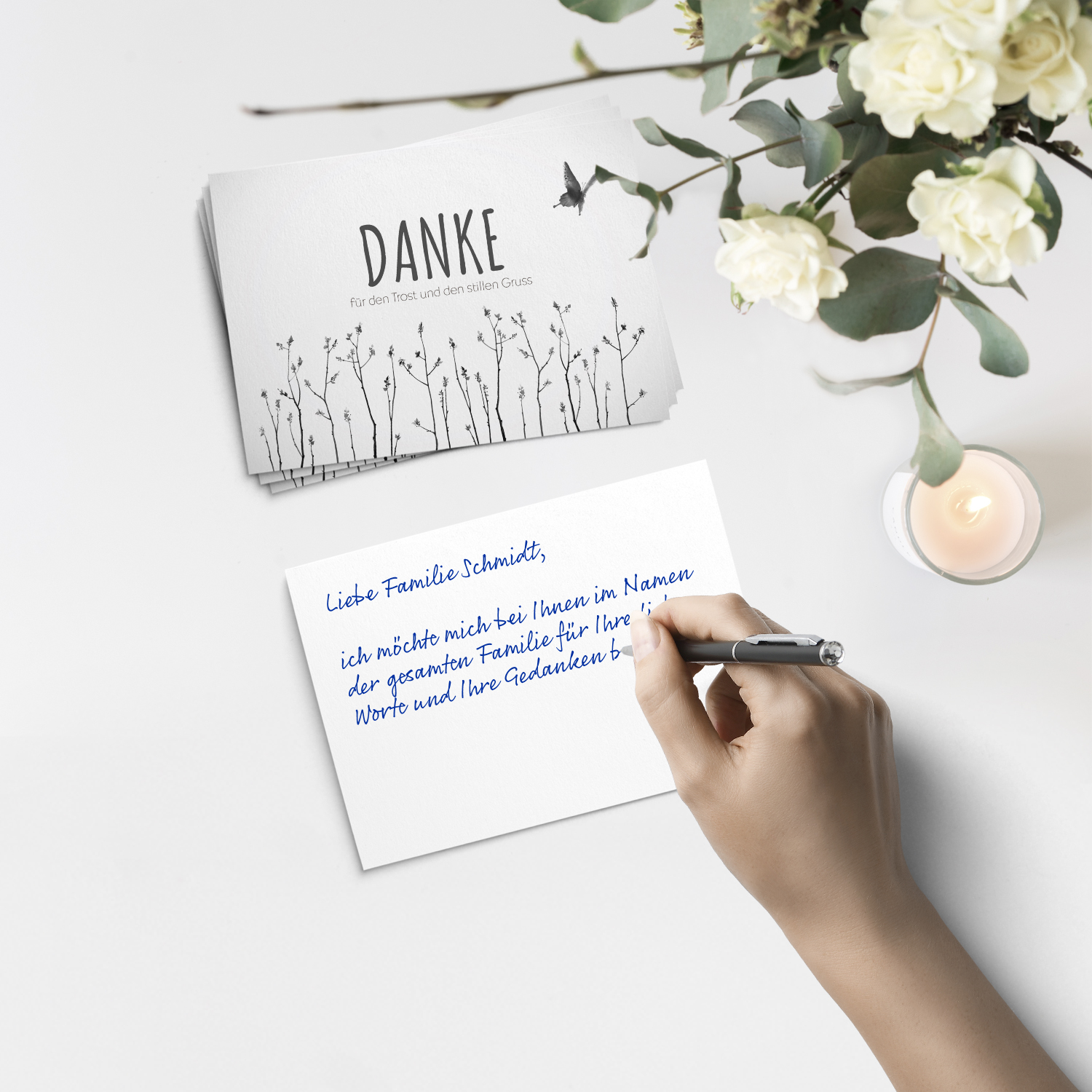 im Trauerfall auf einfühlsame Weise Danke zu sagen.