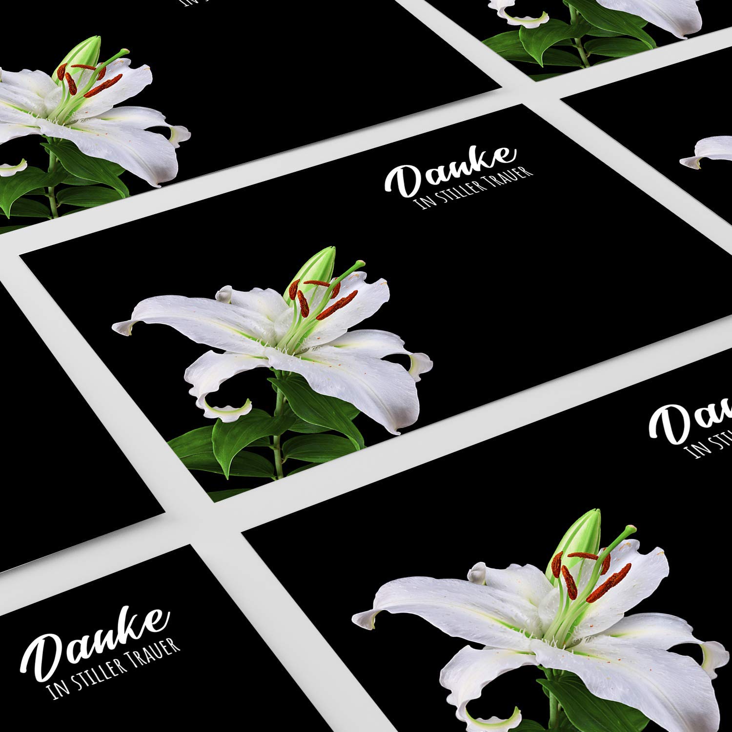 Trauer Danksagungskarten im 10er Set – schlichte Karten mit Umschlägen. Ideal für einen respektvollen Dank im Trauerfall.