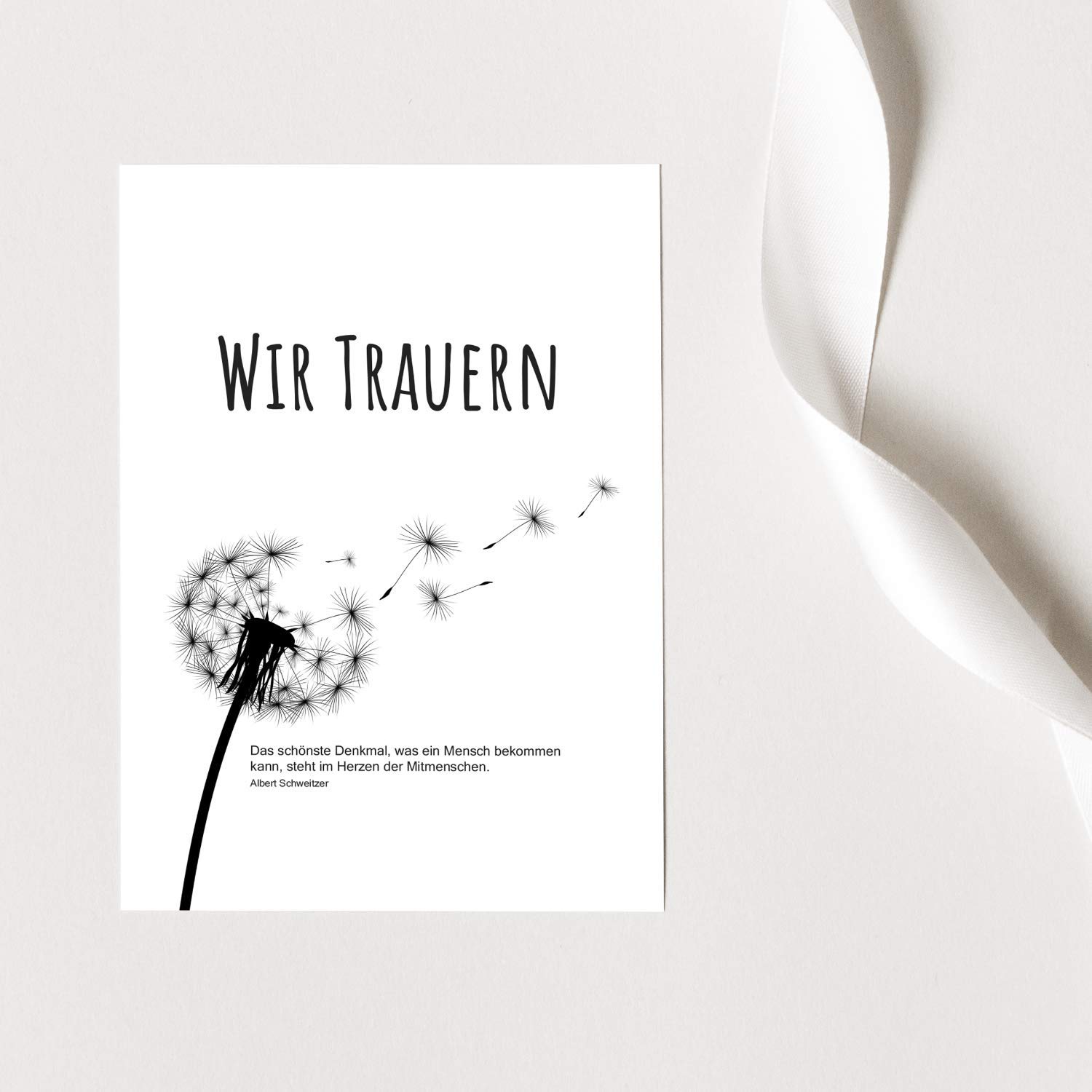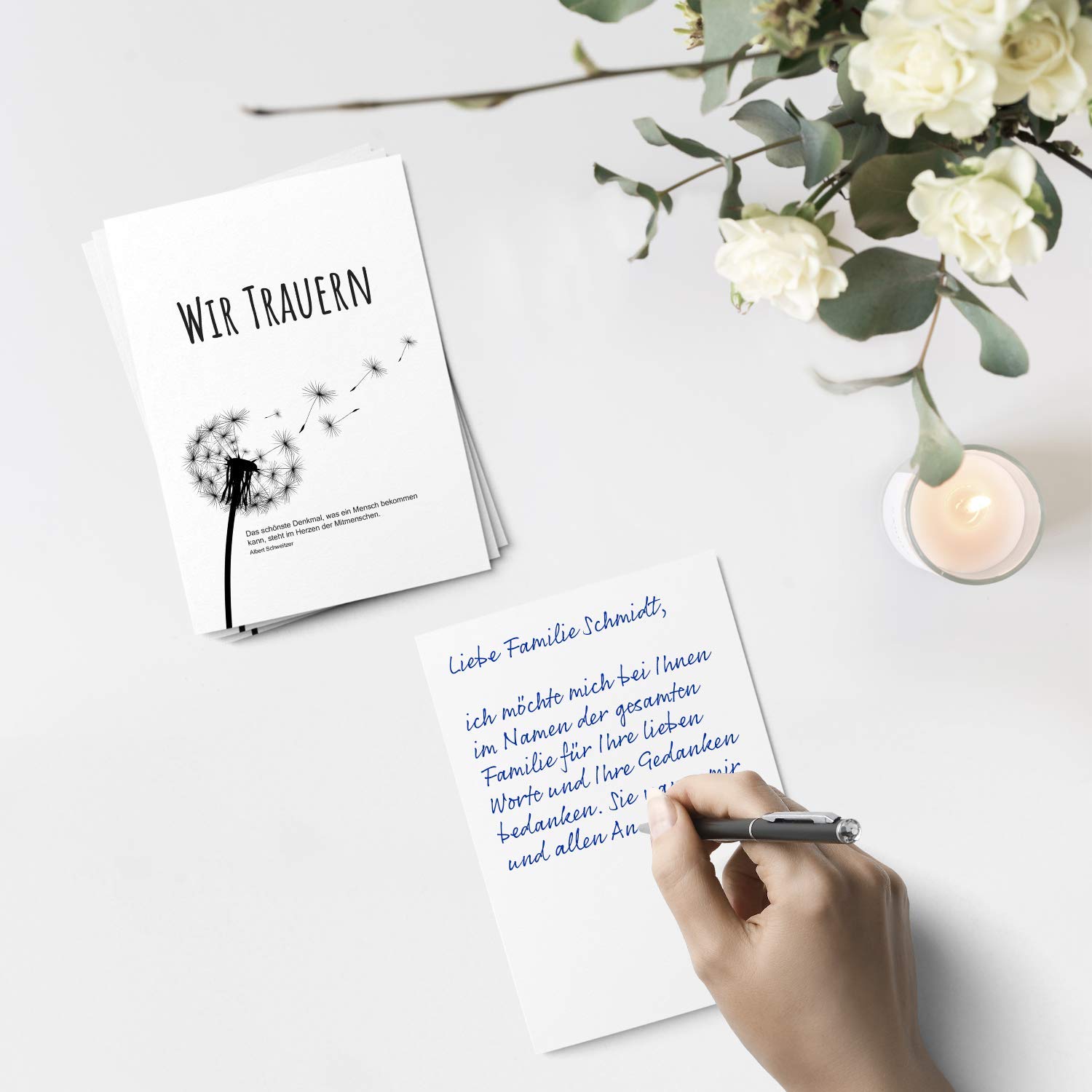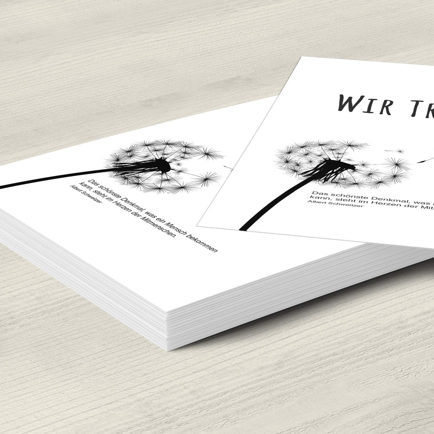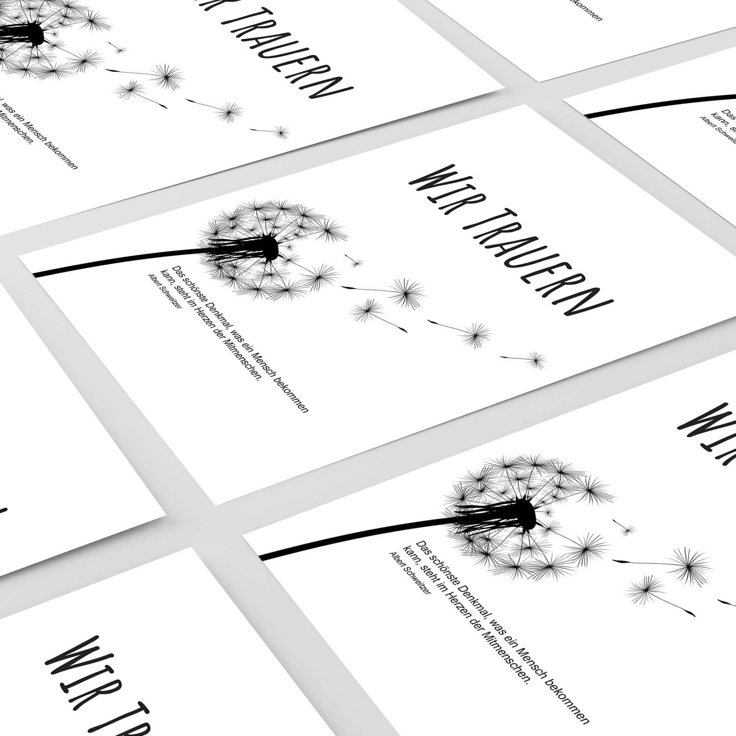 15 x Trauerkarten mit 15 Umschlägen im Set – Motiv Pusteblume Einladung Beerdigung, Anzeige, Trauer, Sterbefall, Friedhof, Begräbnis