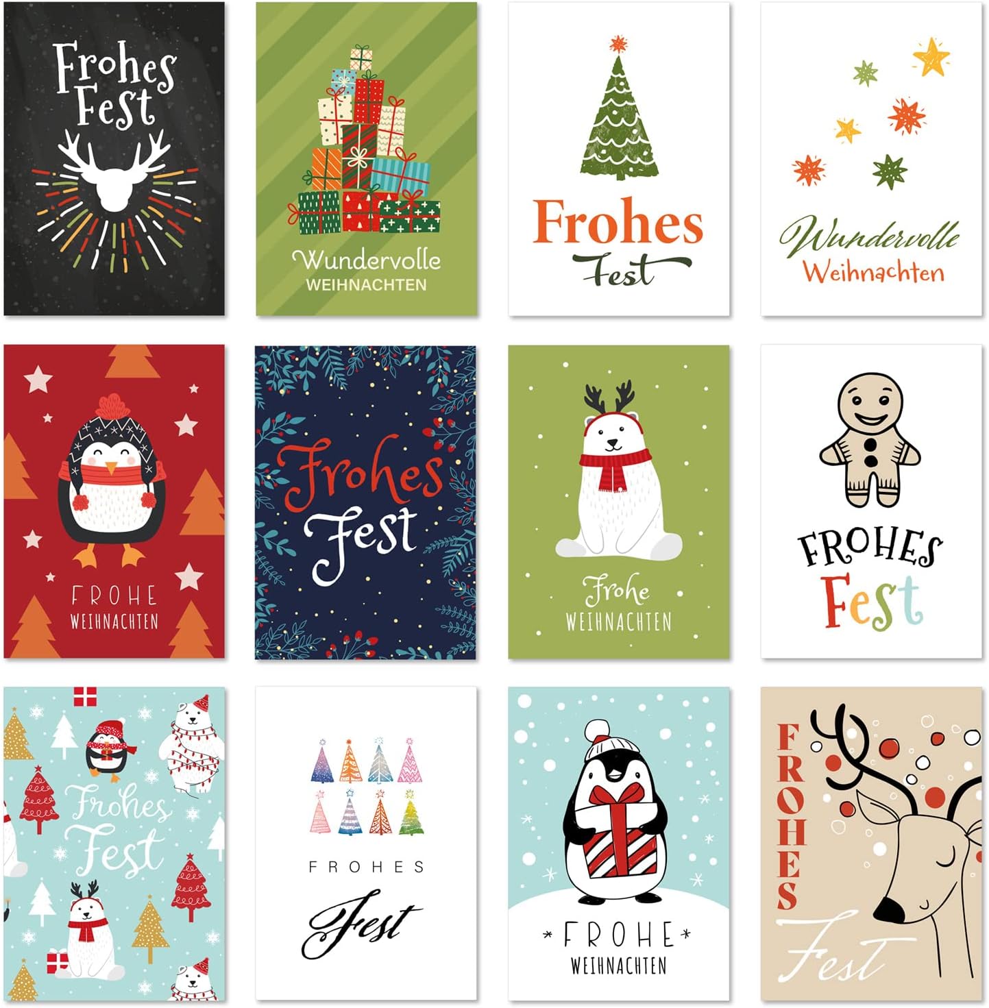 30 Weihnachtskarten Set mit Umschlag 30 Motive Grußkarten Frohe Weihnachten Postkarten Weihnachtspostkarten Mix 1