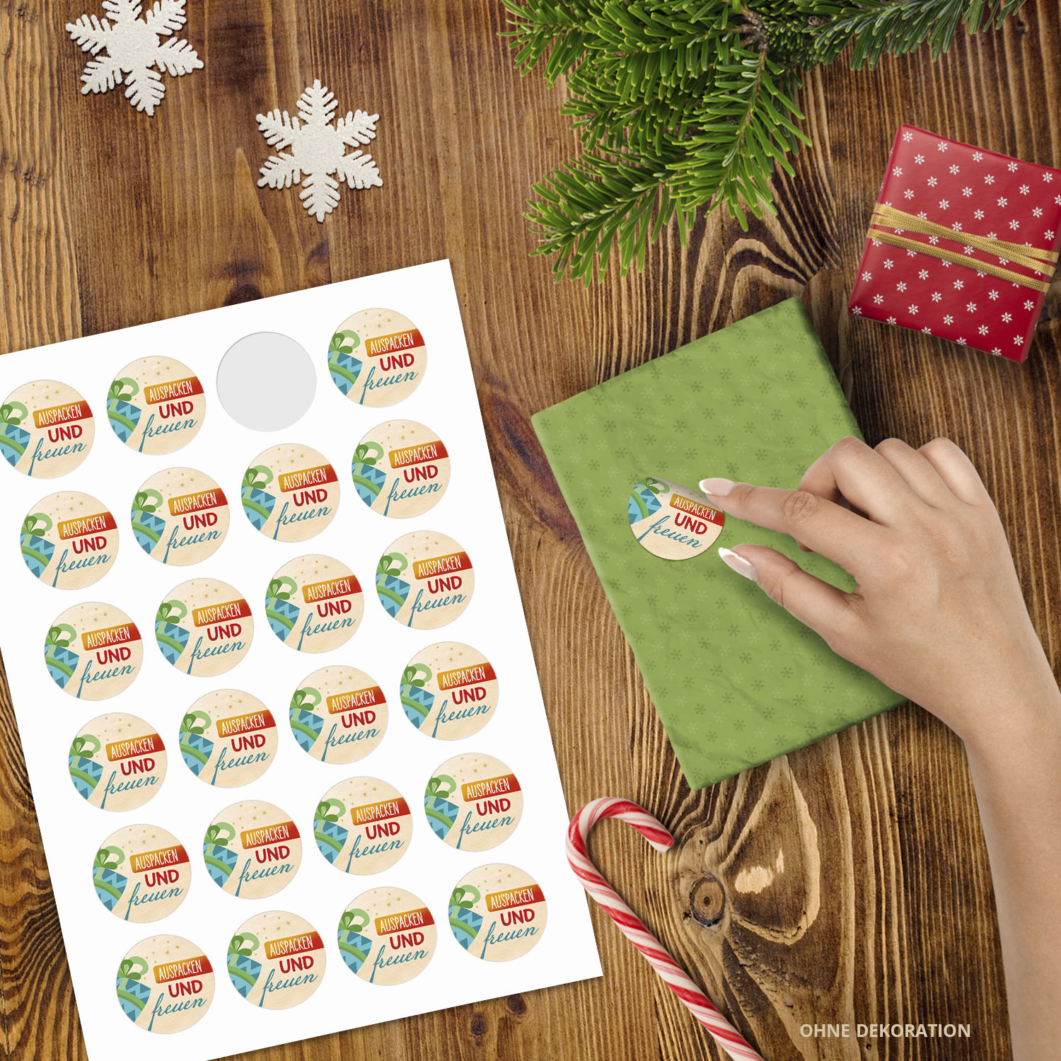 48 Geschenkaufkleber Weihnachten – AUSPACKEN UND FREUEN Geschenk – Weihnachtsaufkleber Aufkleber für Geschenke Etiketten rund 4cm