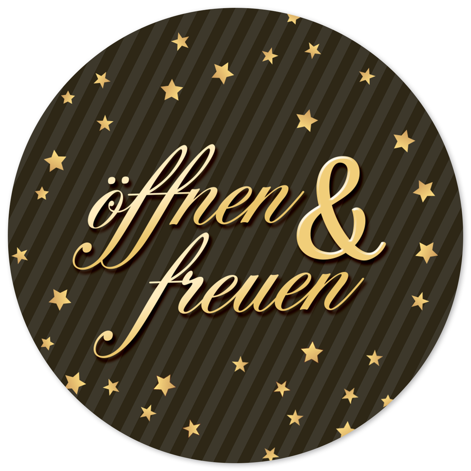 48 Geschenkaufkleber Weihnachten – ÖFFNEN UND FREUEN elegant blau – Weihnachtsaufkleber Aufkleber für Geschenke Etiketten rund 4cm