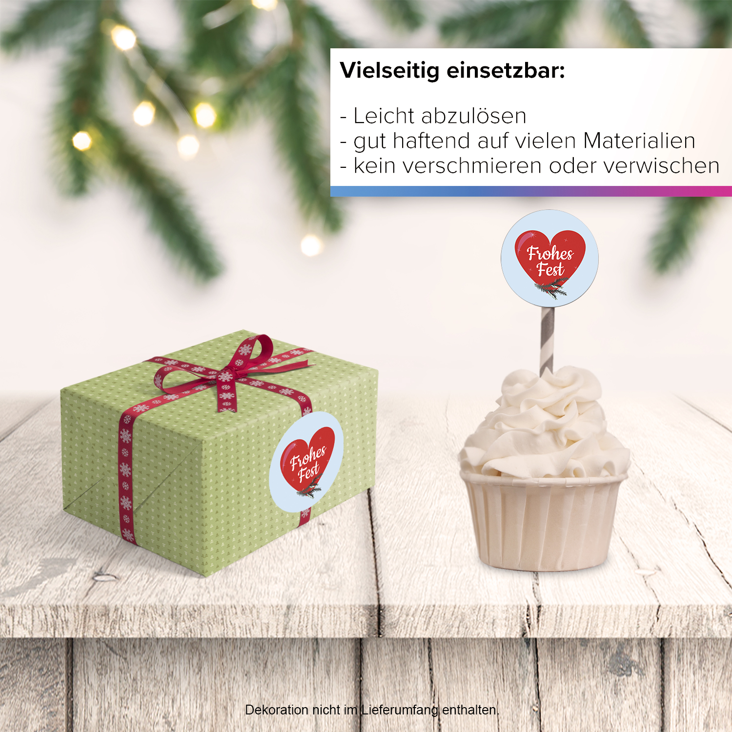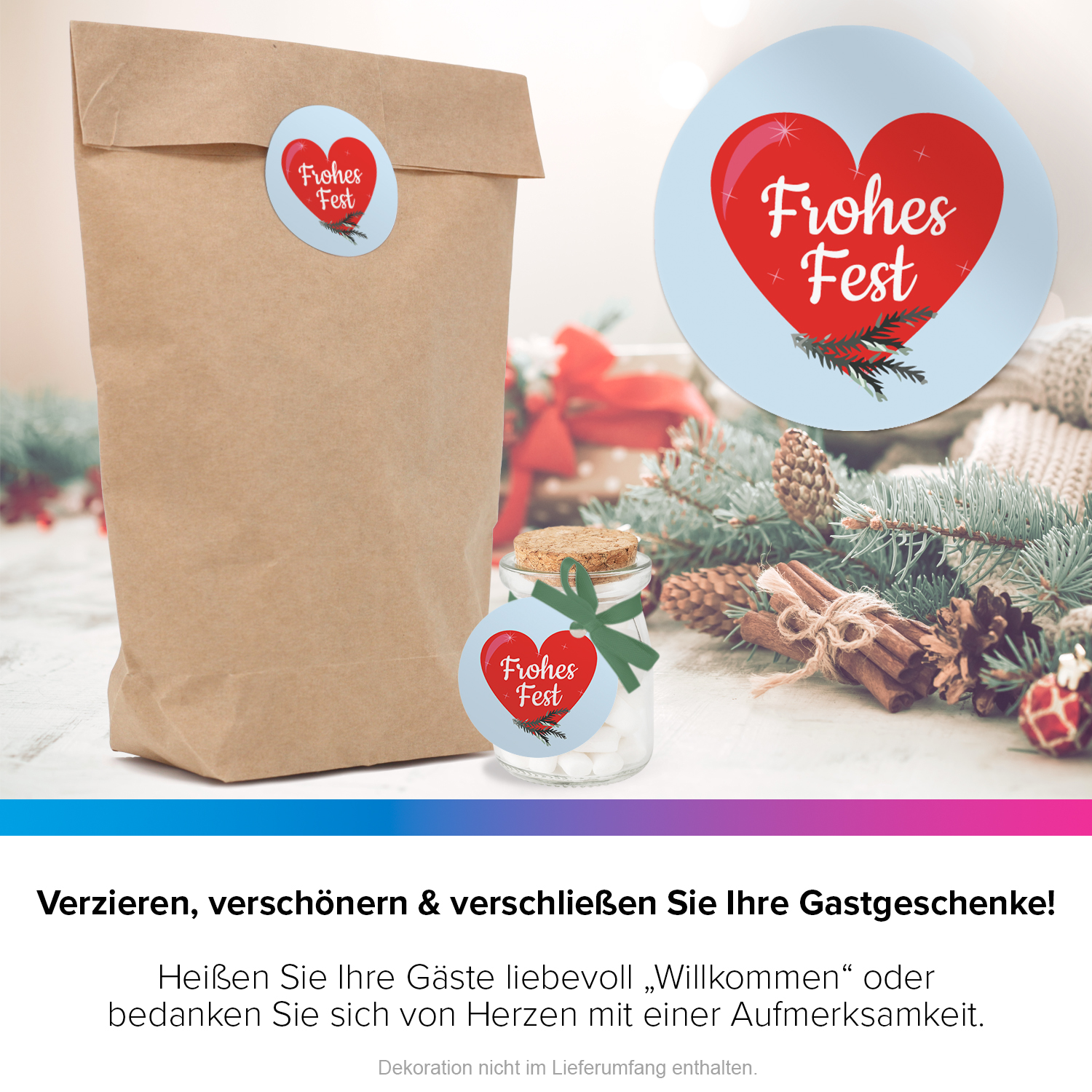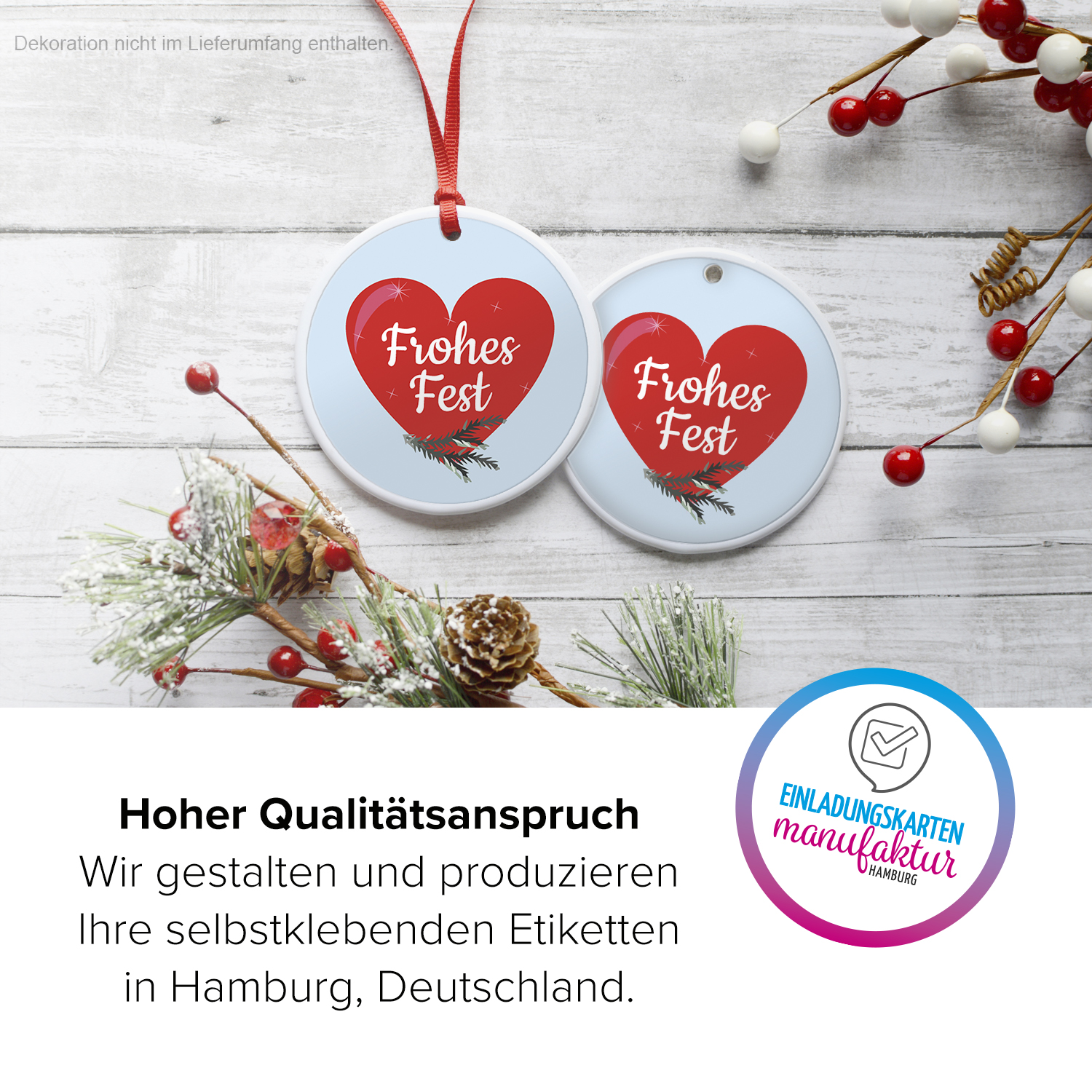 48 Weihnachtsaufkleber Frohes Fest im Herz – für Geschenke zu Weihnachten / Sticker / Aufkleber / Etiketten / Geschenkaufkleber rund / Set