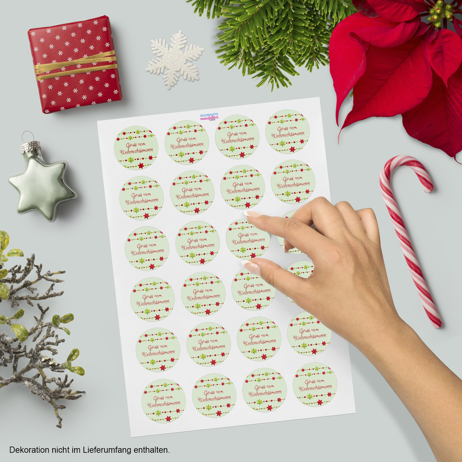 48 Weihnachtsaufkleber (Grün / Gruß vom Weihnachtsmann) – für Geschenke zu Weihnachten / Sticker / Aufkleber / Etiketten / Geschenkaufkleber rund / Set