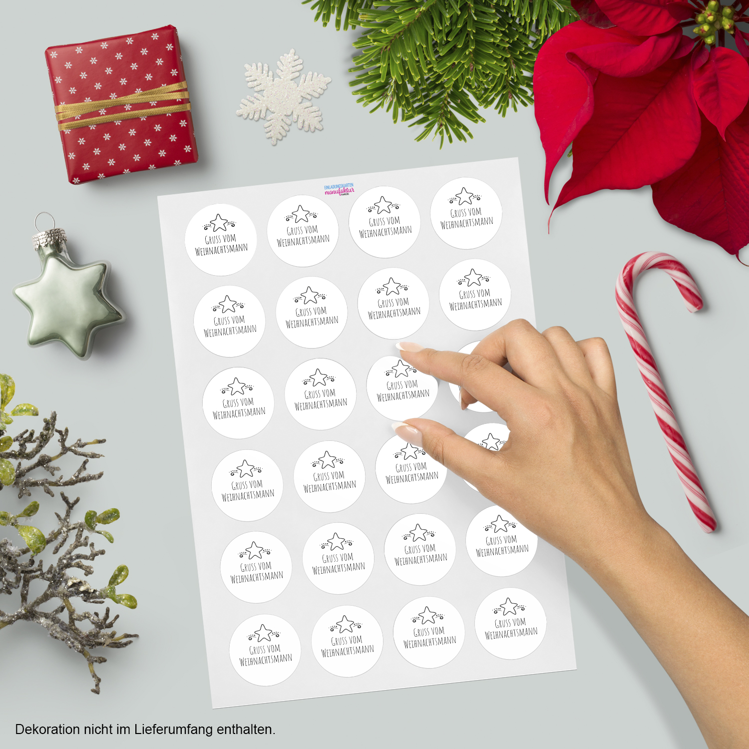 48 Weihnachtsaufkleber Gruß vom Weihnachtsmann – für Geschenke zu Weihnachten / Sticker / Aufkleber / Etiketten / Geschenkaufkleber rund / Set