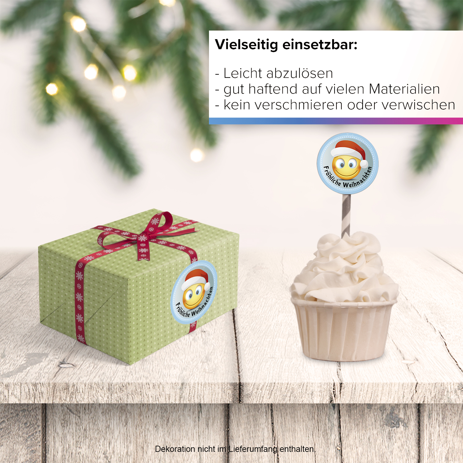 48 Weihnachtsaufkleber WEIHNACHTS-EMOJI / rund, ca. 4cm / Weihnachen / Adventskalender / Advent / Geschenke / Verpackung / Deko / Geschenkaufkleber / Set