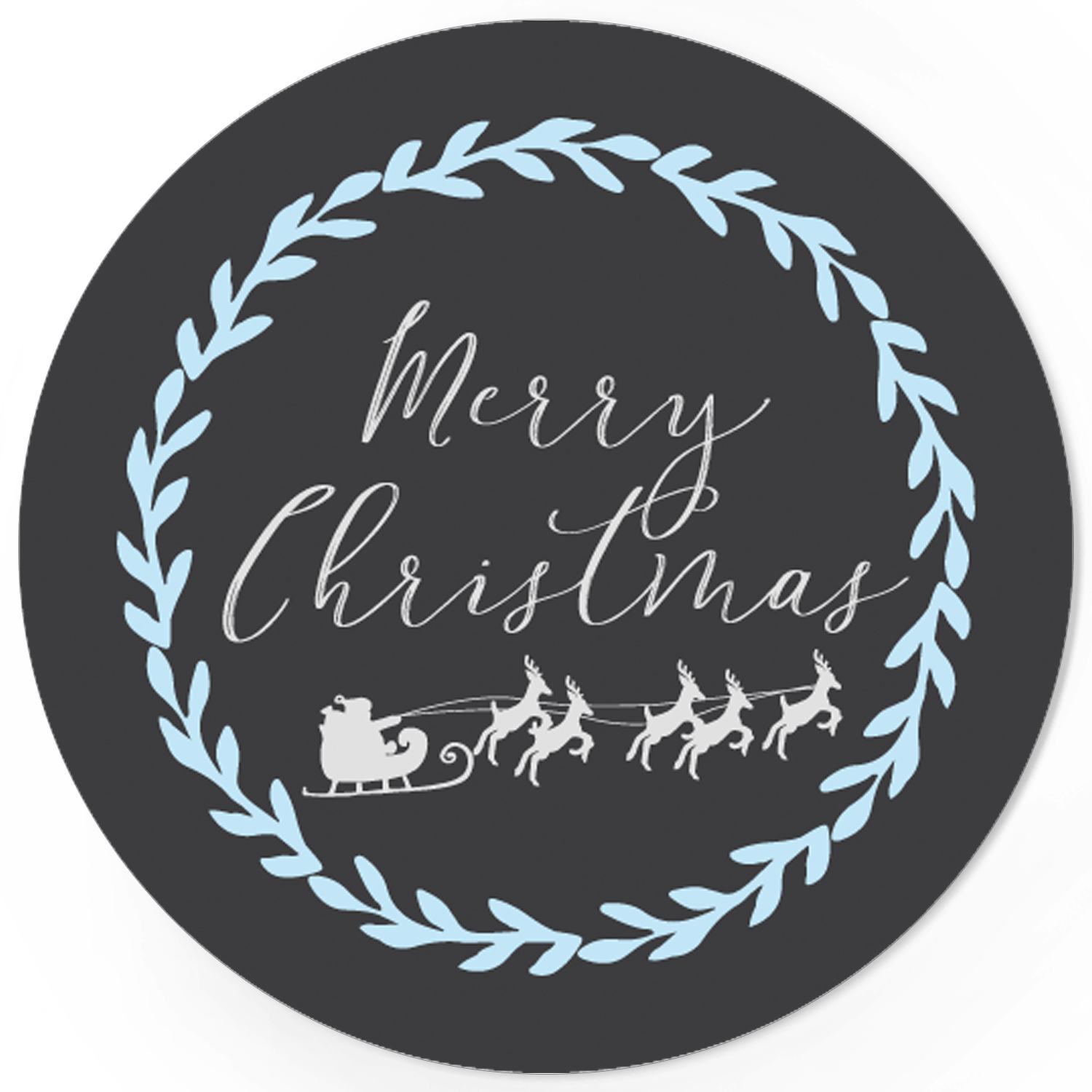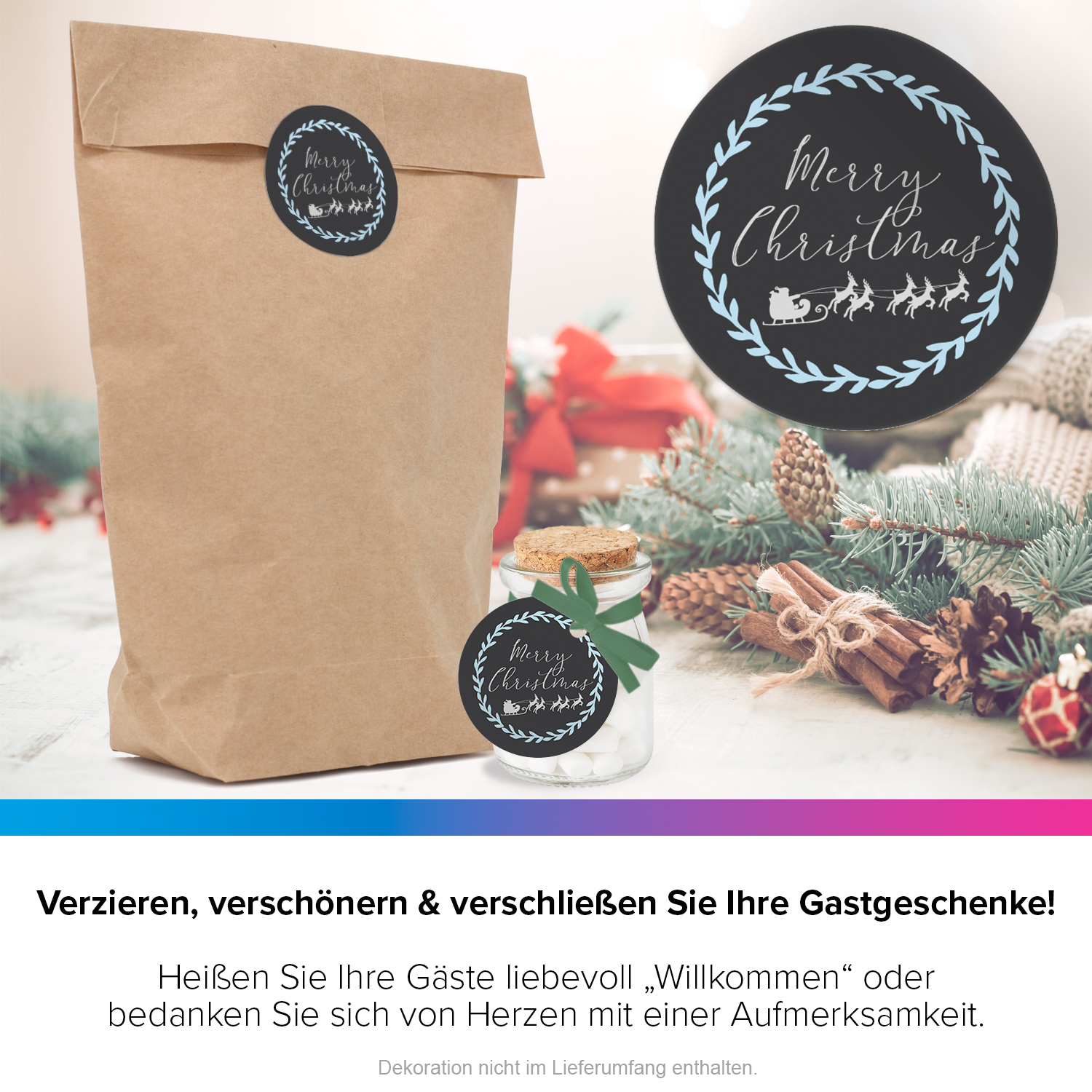 48 Weihnachtsaufkleber Weihnachtsschlitten mit Rentieren und Merry Christmas – für Geschenke zu Weihnachten / Sticker / Aufkleber / Etiketten / Geschenkaufkleber rund / Set