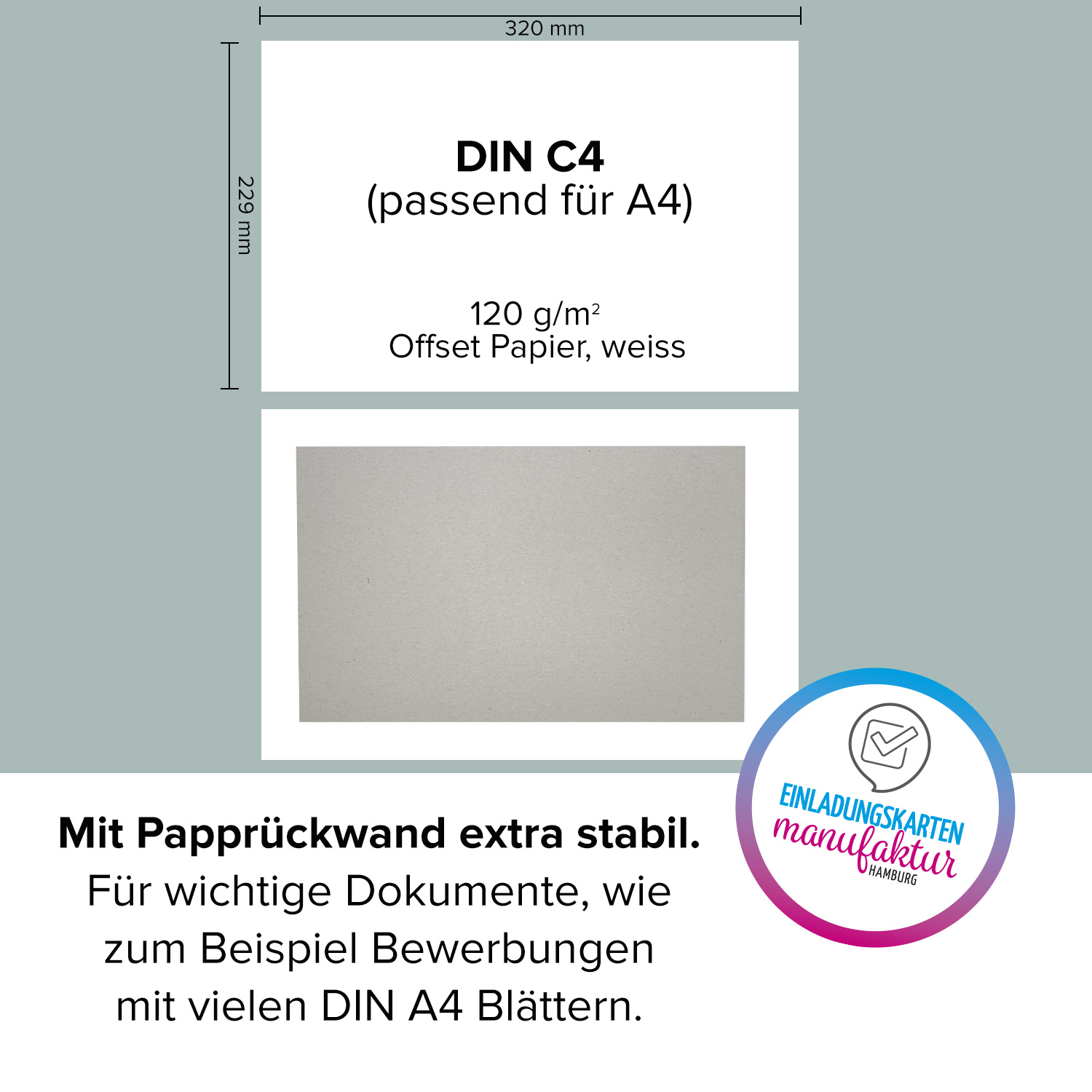5 x Briefumschläge DIN C4 mit Papprückwand (229 x 320 mm), gerade Klappe, selbstklebend ohne Fenster, weiß, 120 g/qm Bewerbung