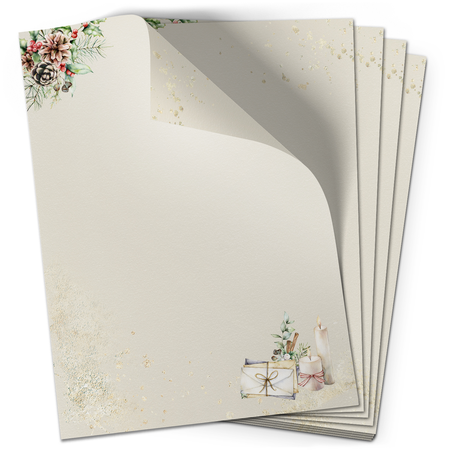 Ob Weihnachtsgrüße, Einladungen zur Adventsfeier, Menükarten für das Festessen oder kreative DIY-Projekte – mit unserem Weihnachtsbriefpapier gestalten Sie stimmungsvolle und individuelle Botschaften. Die festlichen Muster bringen weihnachtliche Stimmung direkt auf jede Seite.