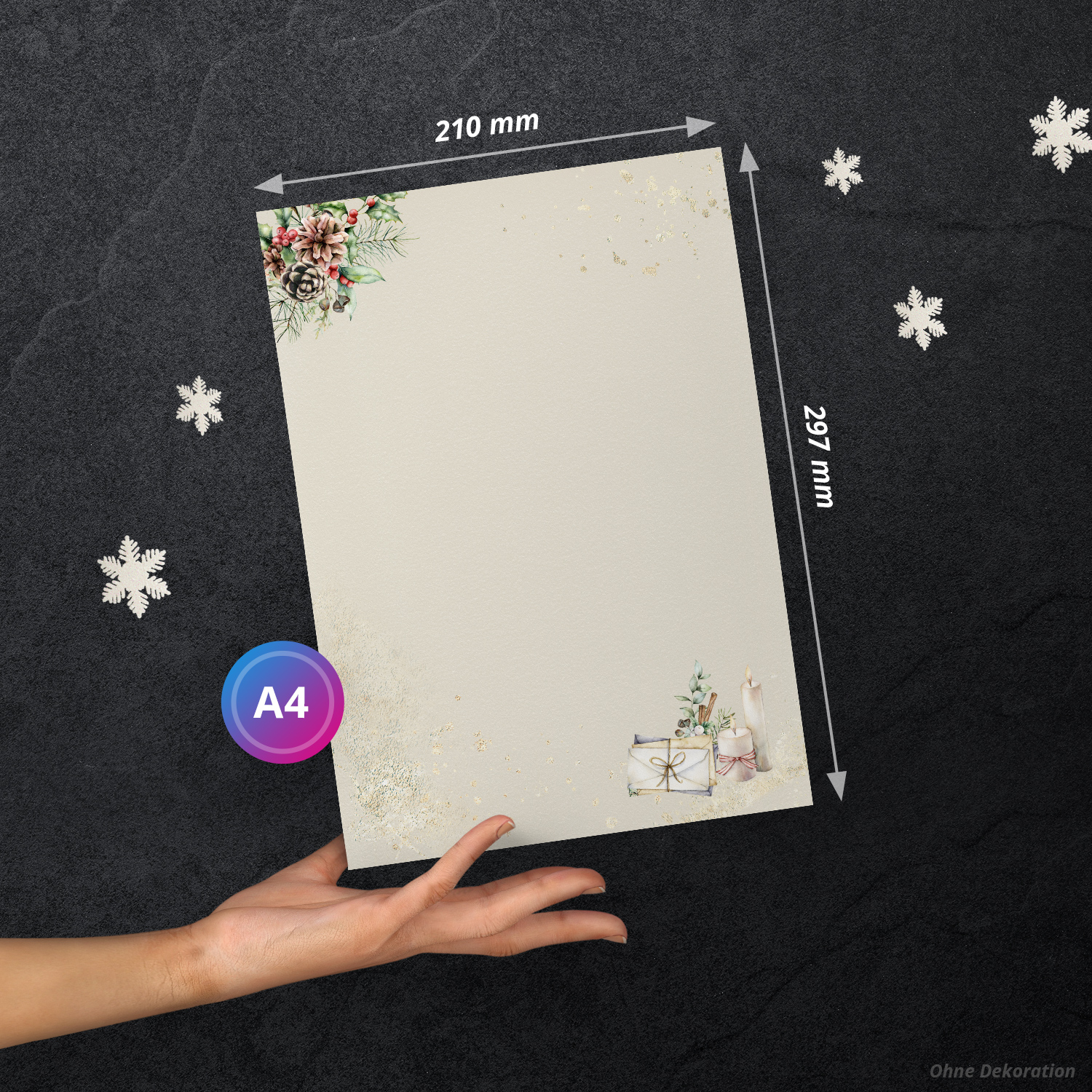 Entdecken Sie hochwertiges Weihnachtsbriefpapier im klassischen DIN-A4-Format. Mit liebevoll gestalteten Weihnachtsmotiven wie Tannenzweigen, Sternen oder festlichen Ornamenten verleihen Sie Ihren Briefen und Einladungen eine festliche Note. Unser Motivpapier Weihnachten ist die perfekte Basis, um Ihre Korrespondenz im Advent und zu den Feiertagen stilvoll zu gestalten.