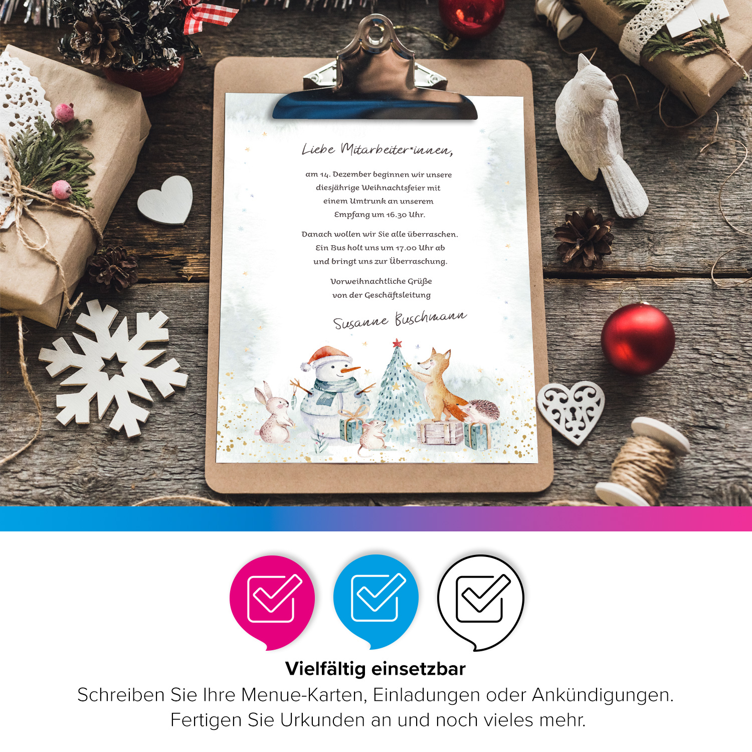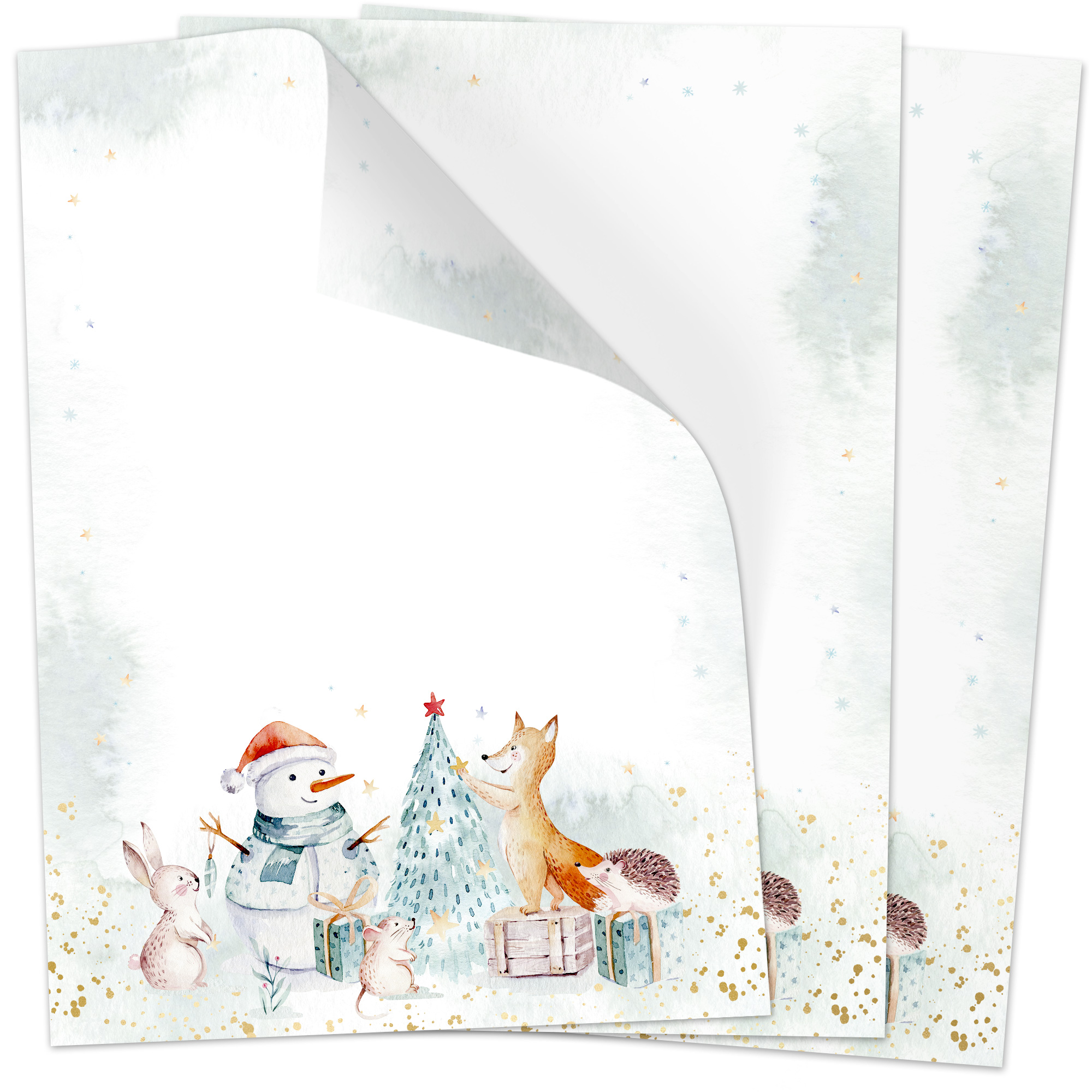 50 Blatt Weihnachtspapier (A4) | Niedliche Aquarell Tiere | Motivpapier | edles Briefpapier Weihnachten | beidseitig weihnachtlich bedruckt