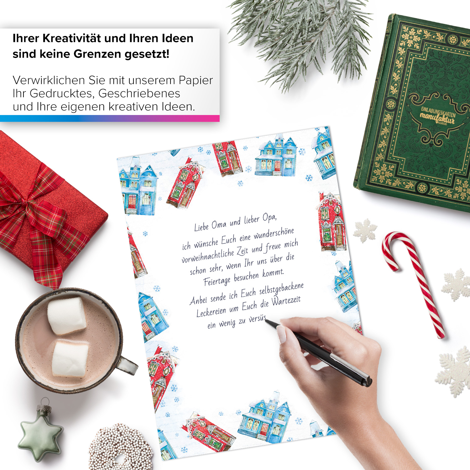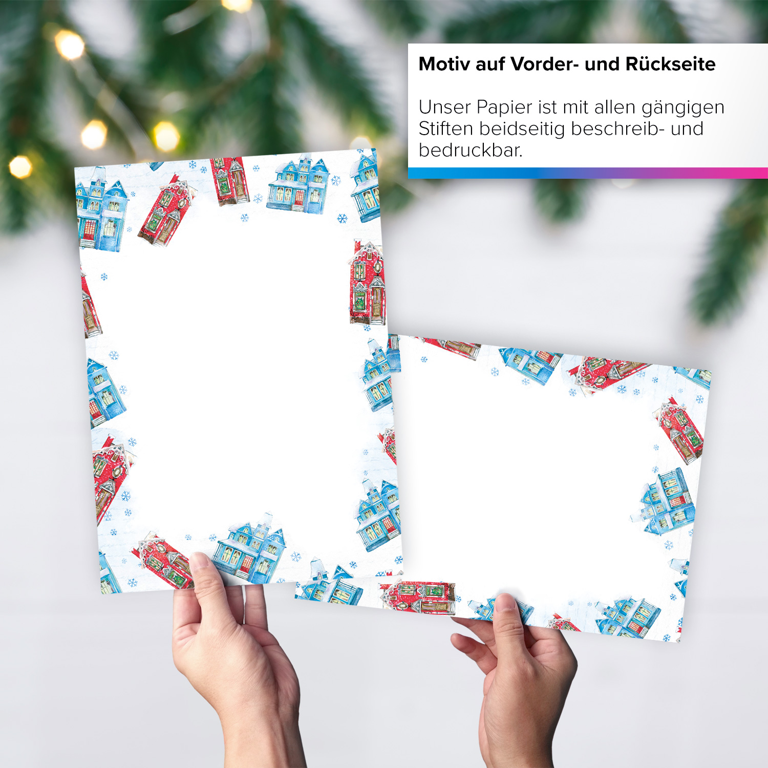 50 Blatt Weihnachtspapier (A4) | weihnachtliche Häuser | Motivpapier | edles Briefpapier Weihnachten | beidseitig weihnachtlich bedruckt