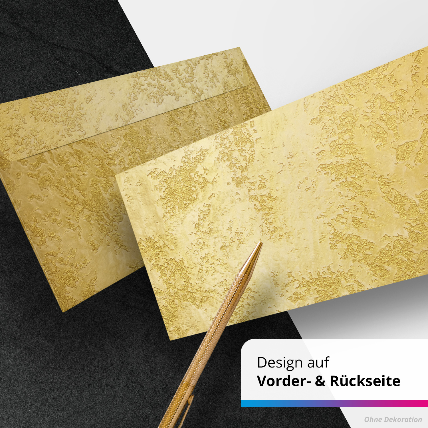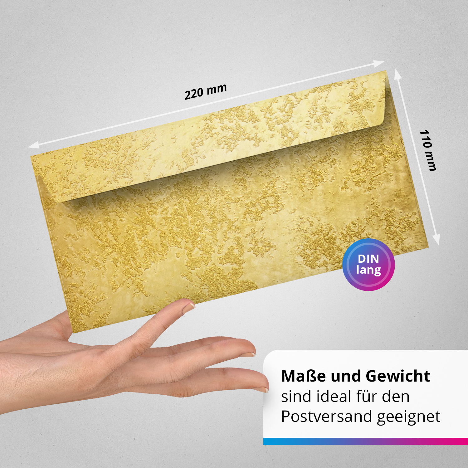 50 Briefumschläge DIN Lang | Fotodruck Gold Look edel | selbstklebend ohne Fenster | Brief-Umschlag mit Design-Motiv bedruckt | 90 g/m²