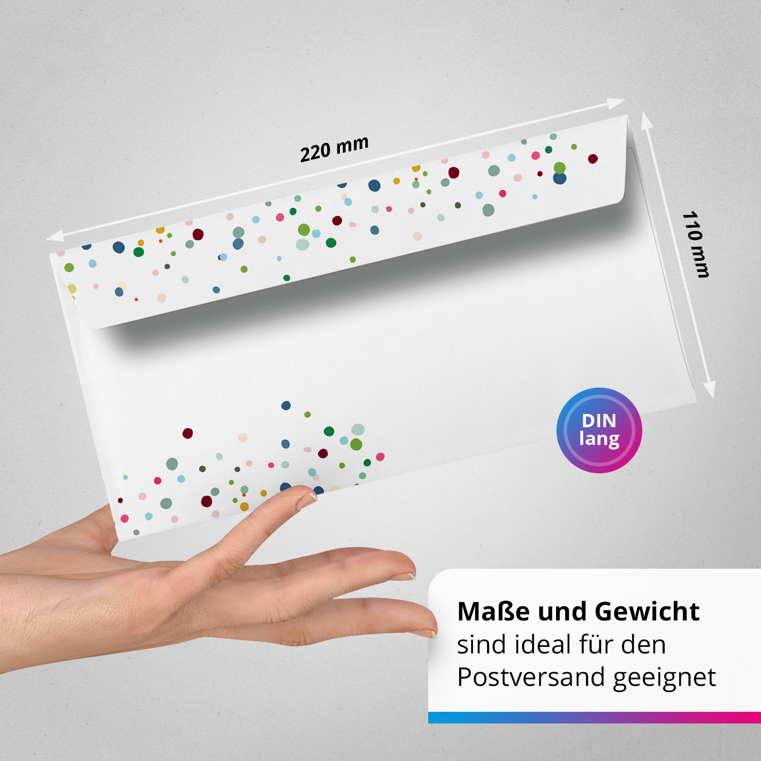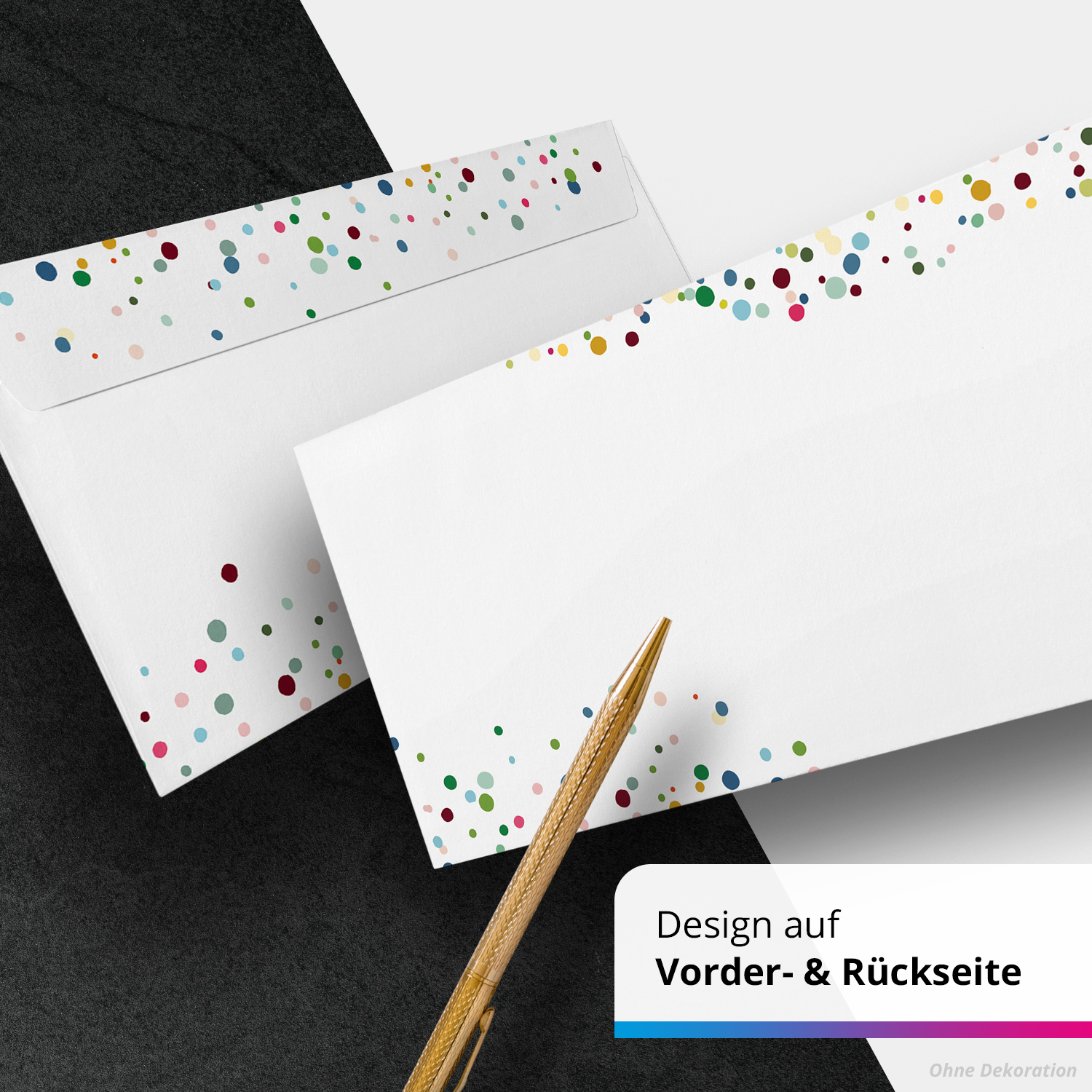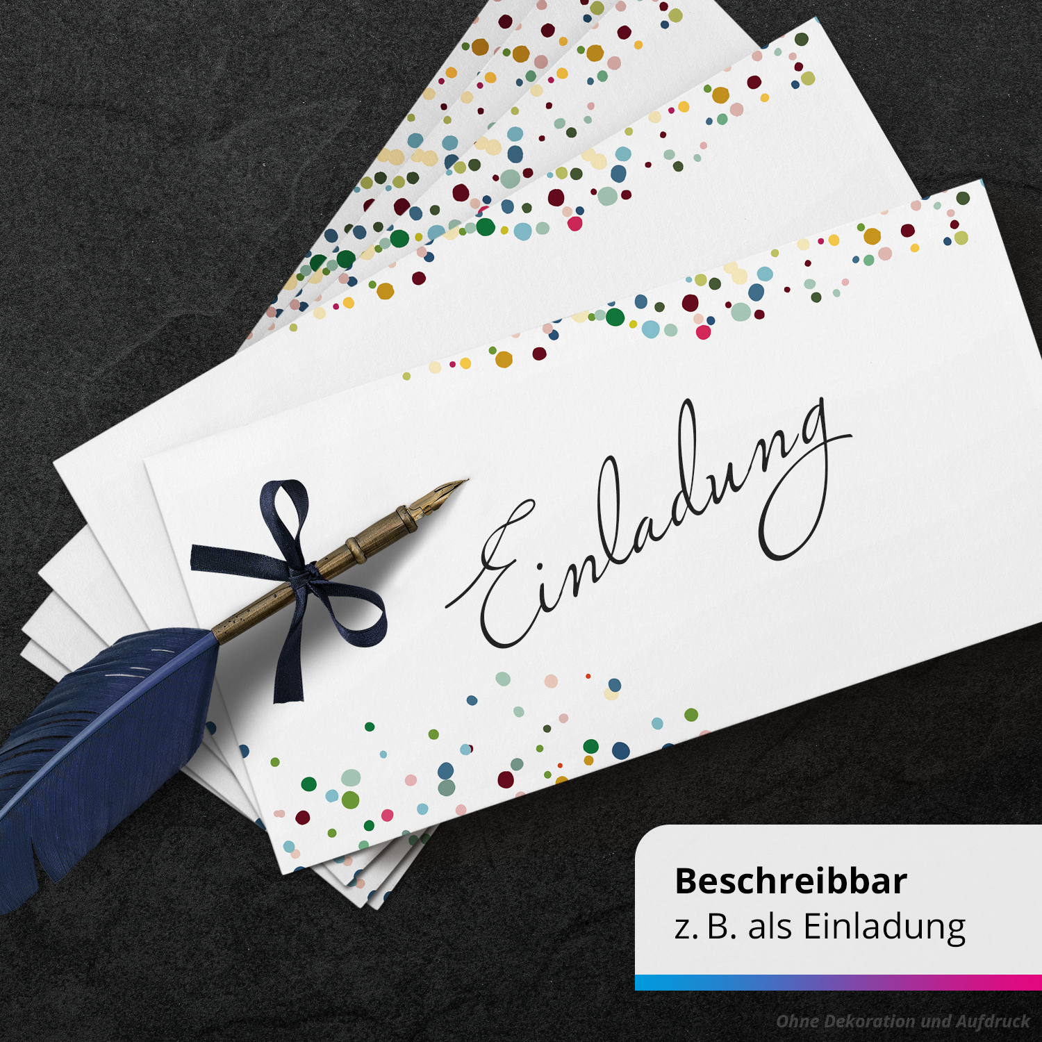 50 Briefumschläge DIN Lang | Konfetti Party Bunt | selbstklebend ohne Fenster | Brief-Umschlag mit Design-Motiv bedruckt | 90 g/m²