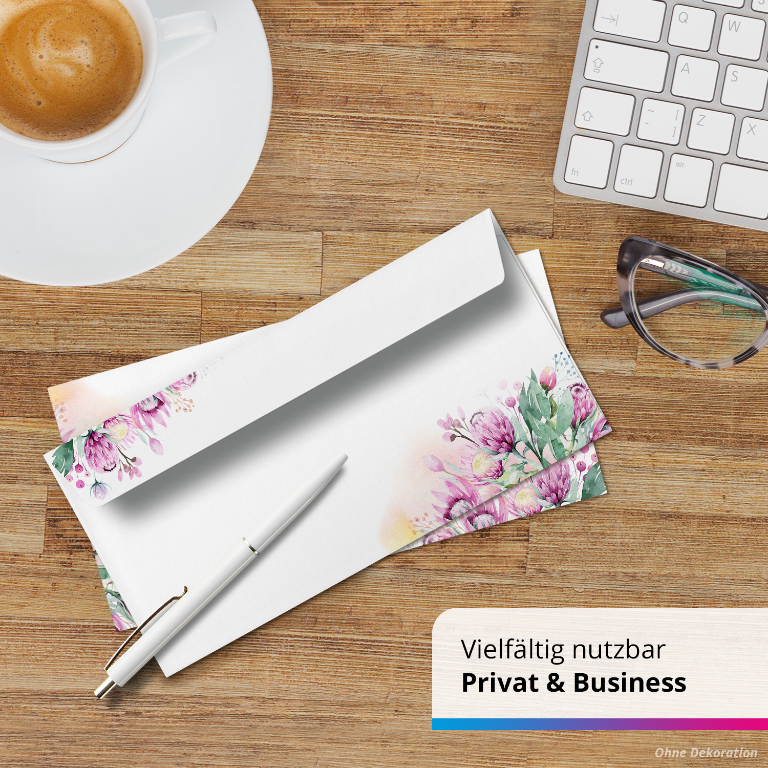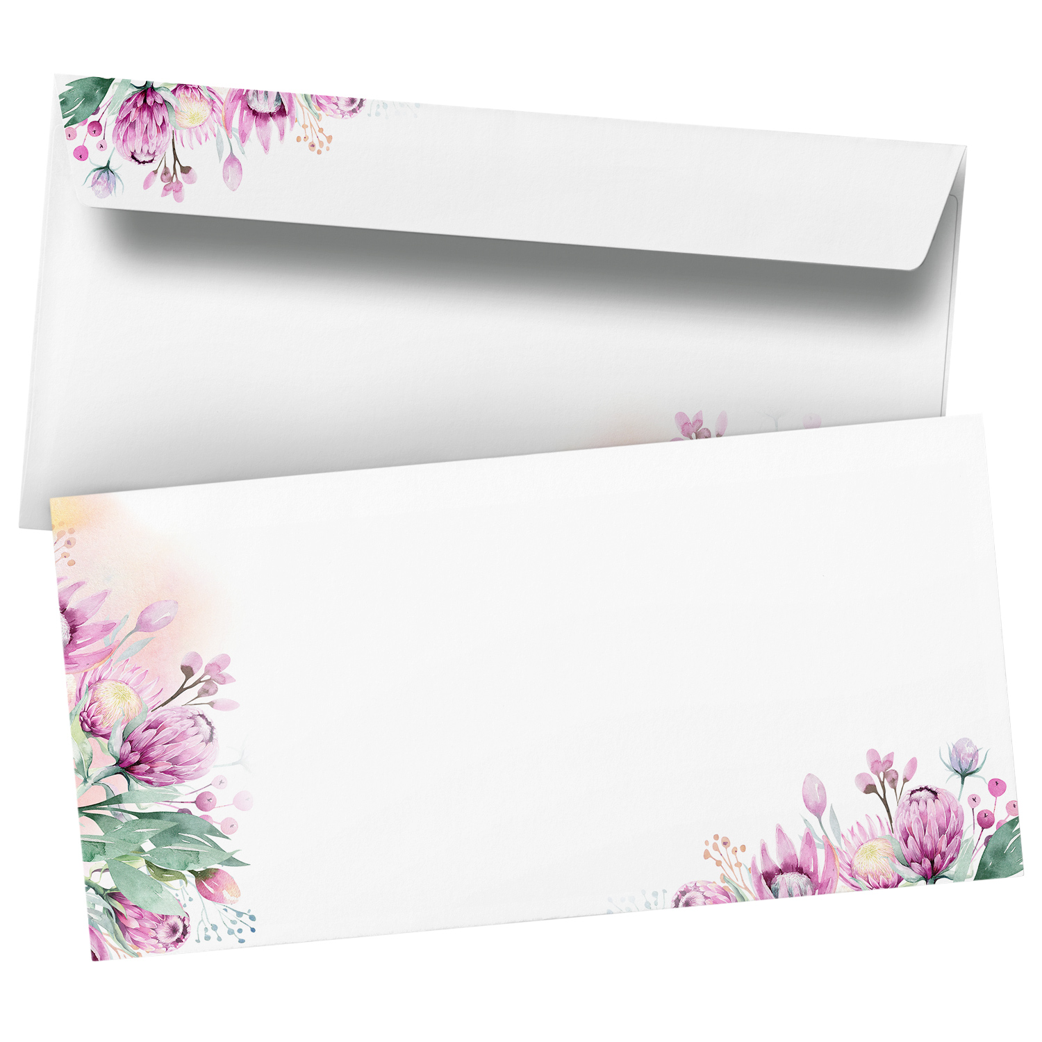 50 Briefumschläge DIN Lang | Rosa Blumen und Blüten | selbstklebend ohne Fenster | Brief-Umschlag mit Design-Motiv bedruckt | 90 g/m²