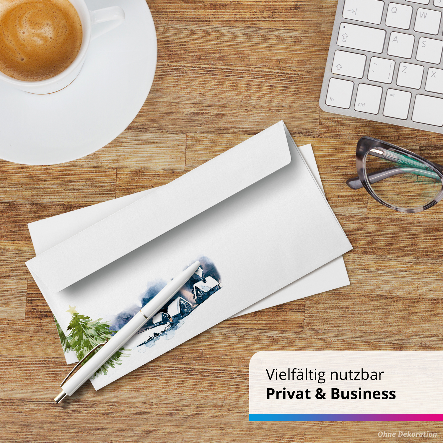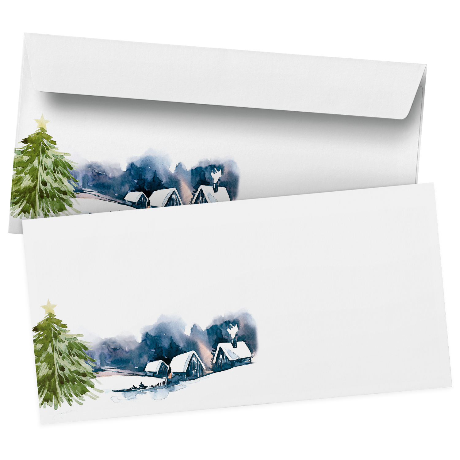 50 Briefumschläge DIN Lang | Winter Schneelandschaft Weihnachten | selbstklebend ohne Fenster | Brief-Umschlag mit Design-Motiv bedruckt | 90 g/m²