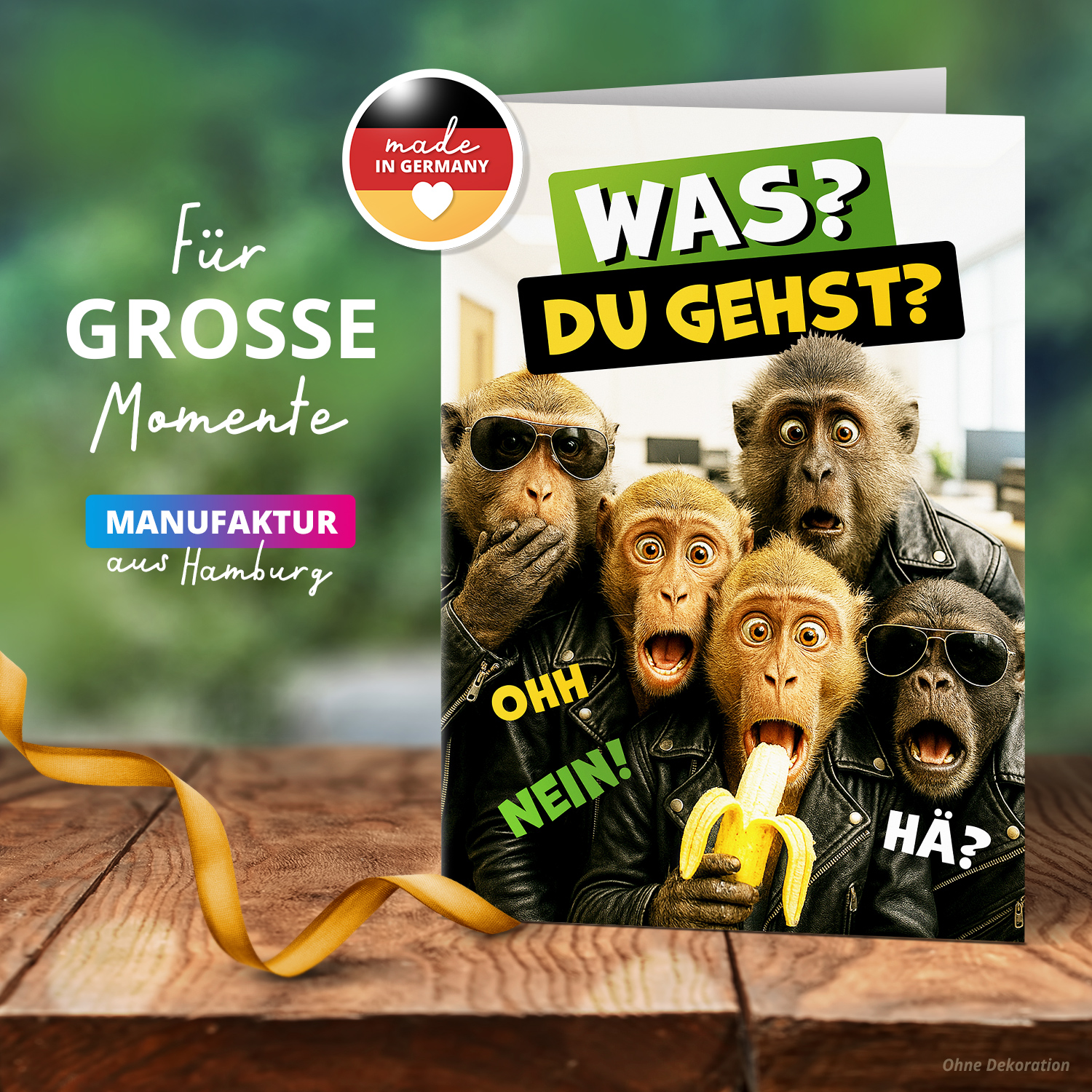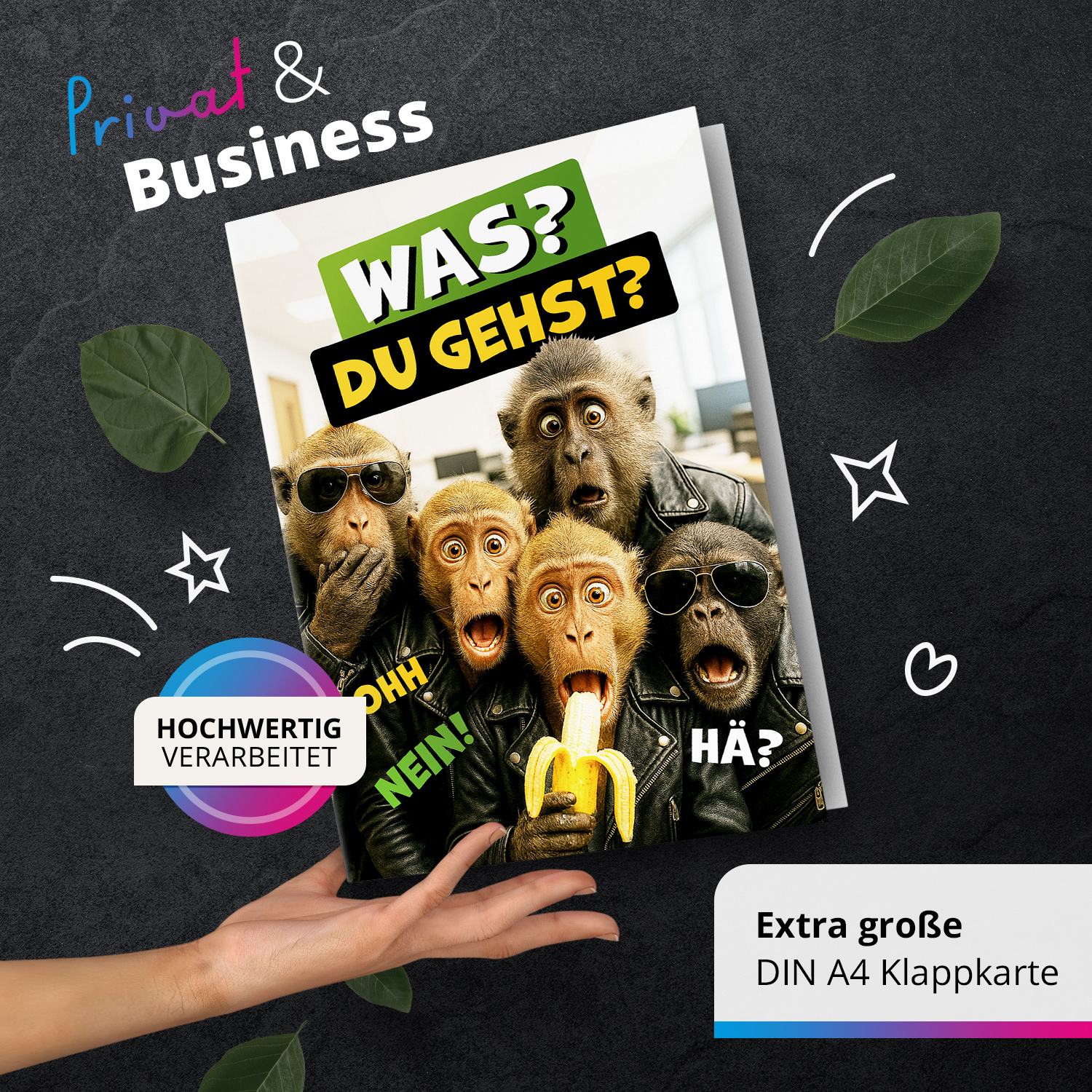 Abschiedskarte Kollege A4 extra große XXL mit Umschlag witzig Abschied letzter Arbeitstag Spruch Rente Pension Neuer Job Kündigung Affe