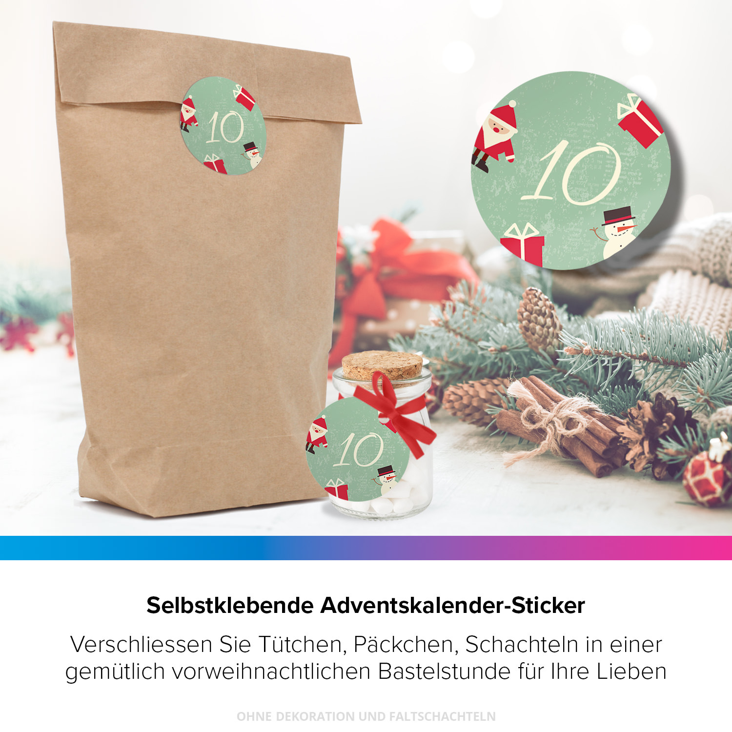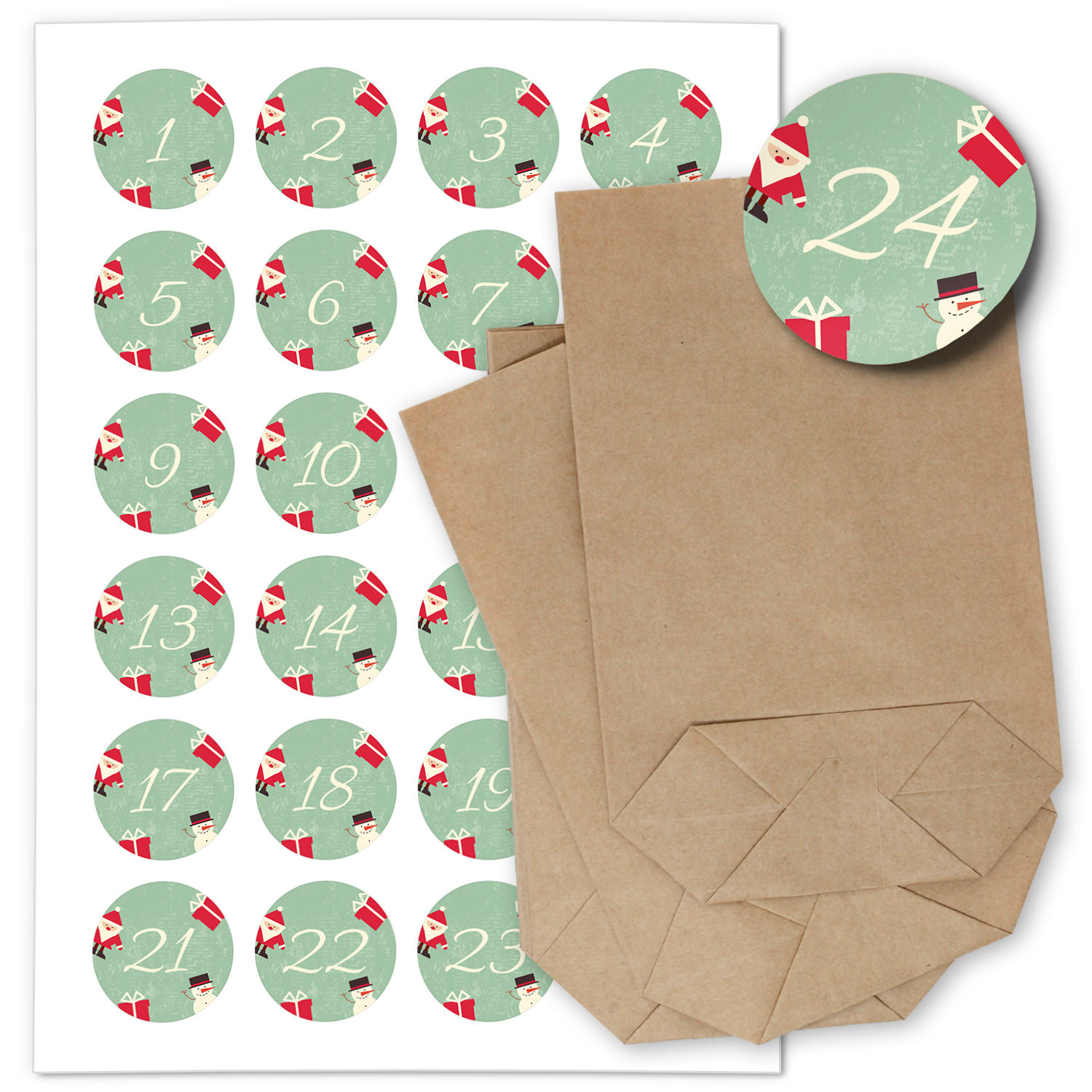 Adventskalender Set – 24 Etiketten & 24 Kraftpapier Beutel für kreative DIY-Ideen
