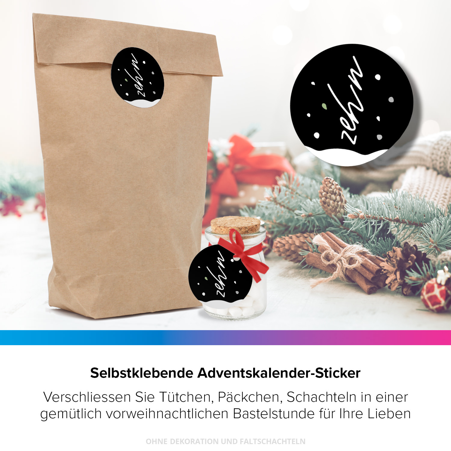 • Format: praktische Beutelgröße, Etiketten mit Zahlen 1–24